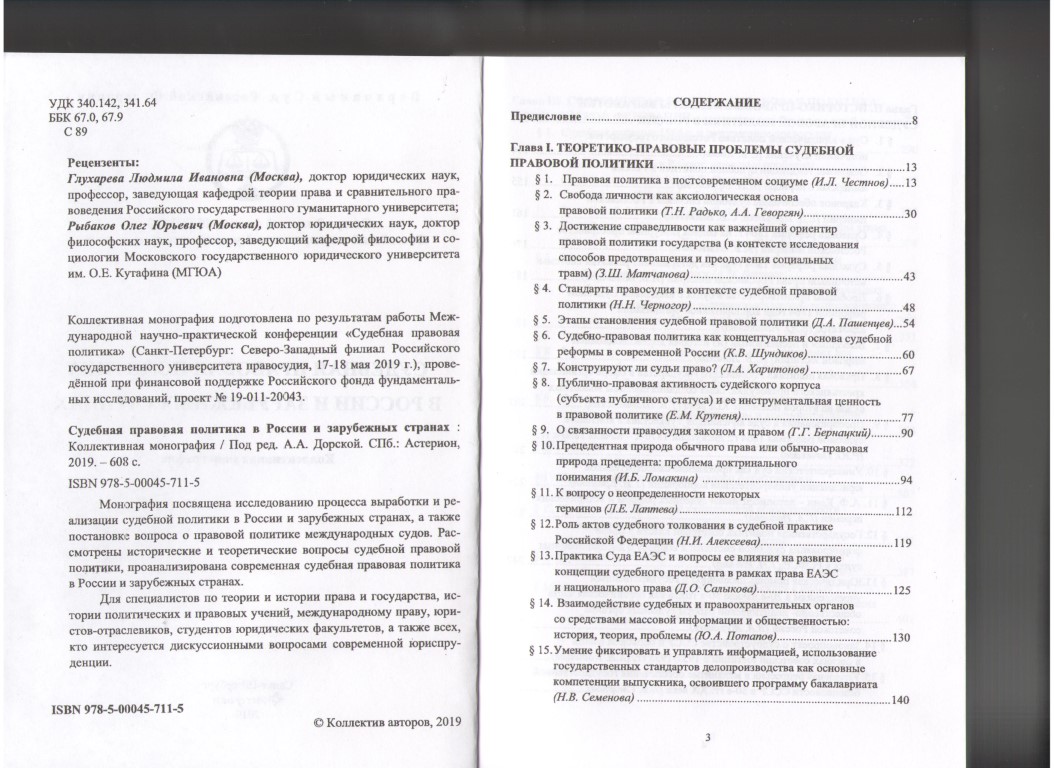 «Судебная правовая политика в России и зарубежных странах». Коллективная монография. СПб, 2019