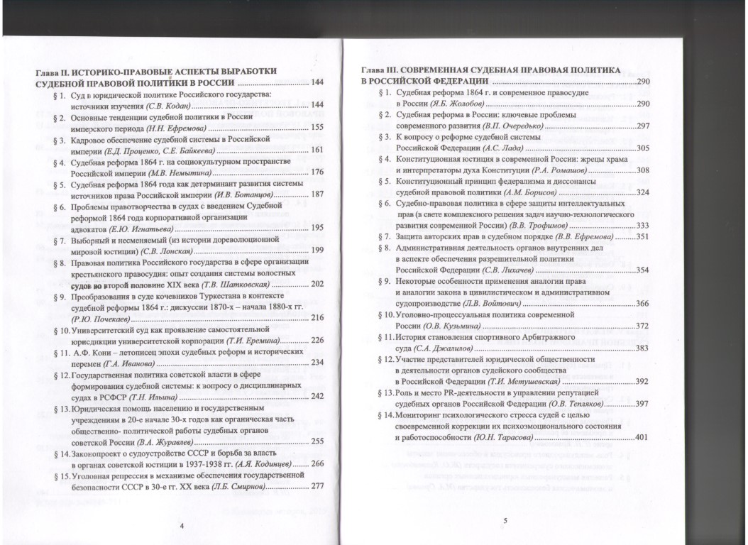 Оглавление книги «Судебная правая политика в России и зарубежных странах». С. 4–5