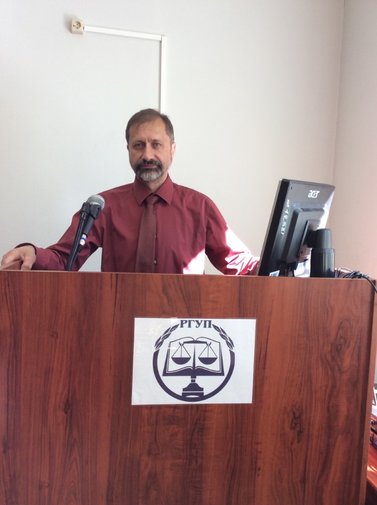 Доклад доцента Е.Л. Поцелуева на пленарном заседании Международной научно-практической конференции в Северо-Западном филиале РГУП. 17.05.19. Фото О.В. Кузьминой