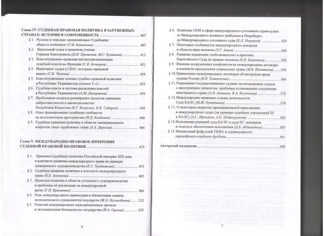 Оглавление книги «Судебная правая политика в России и зарубежных странах». С. 6–7