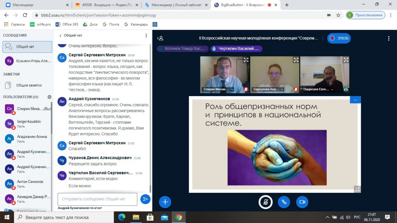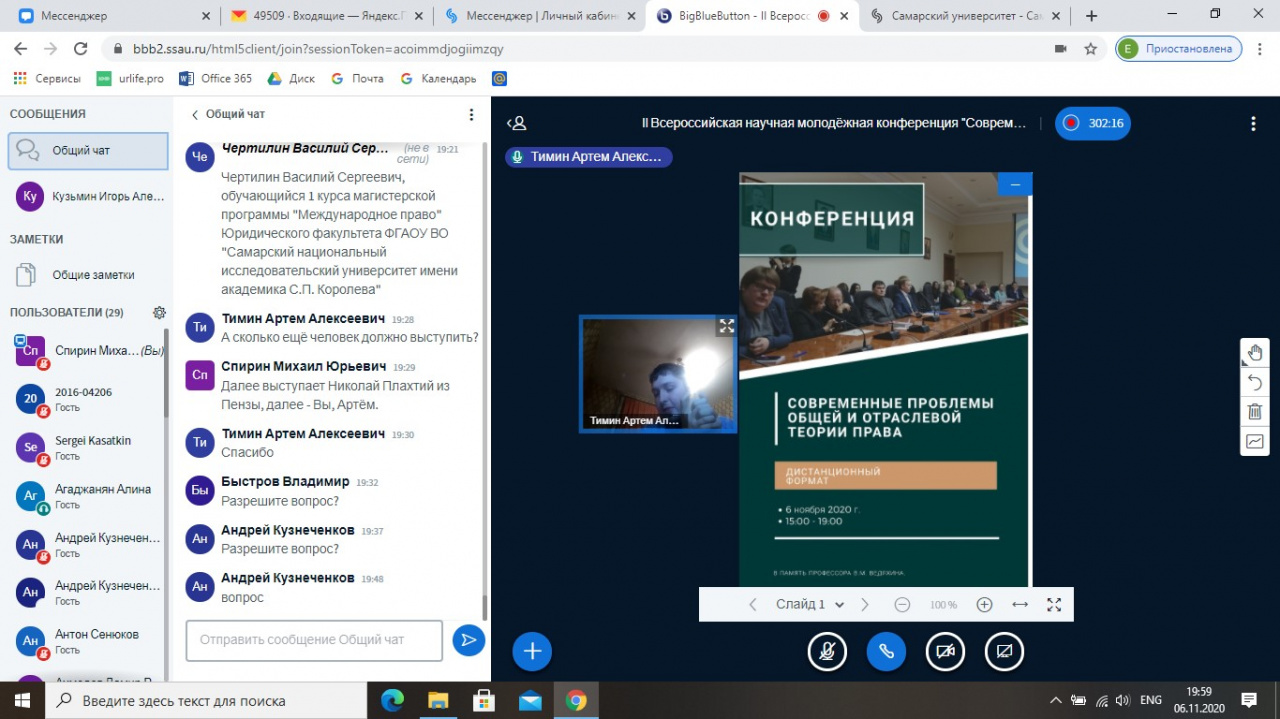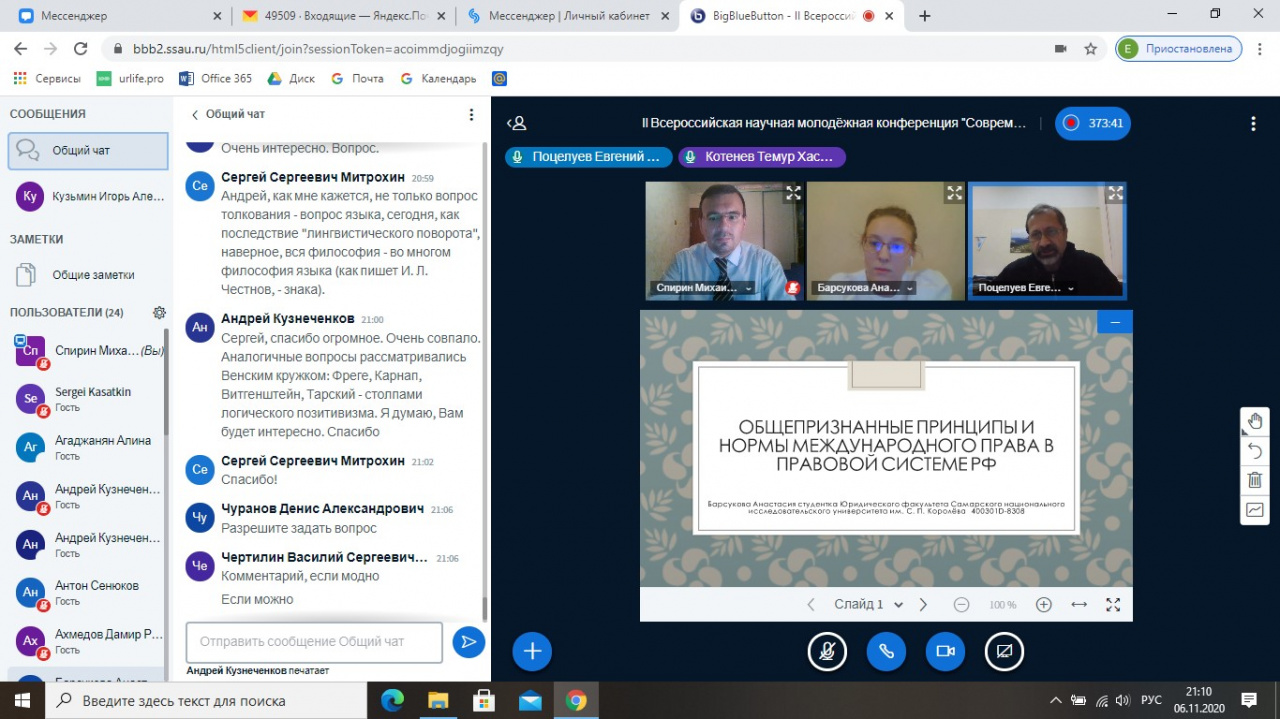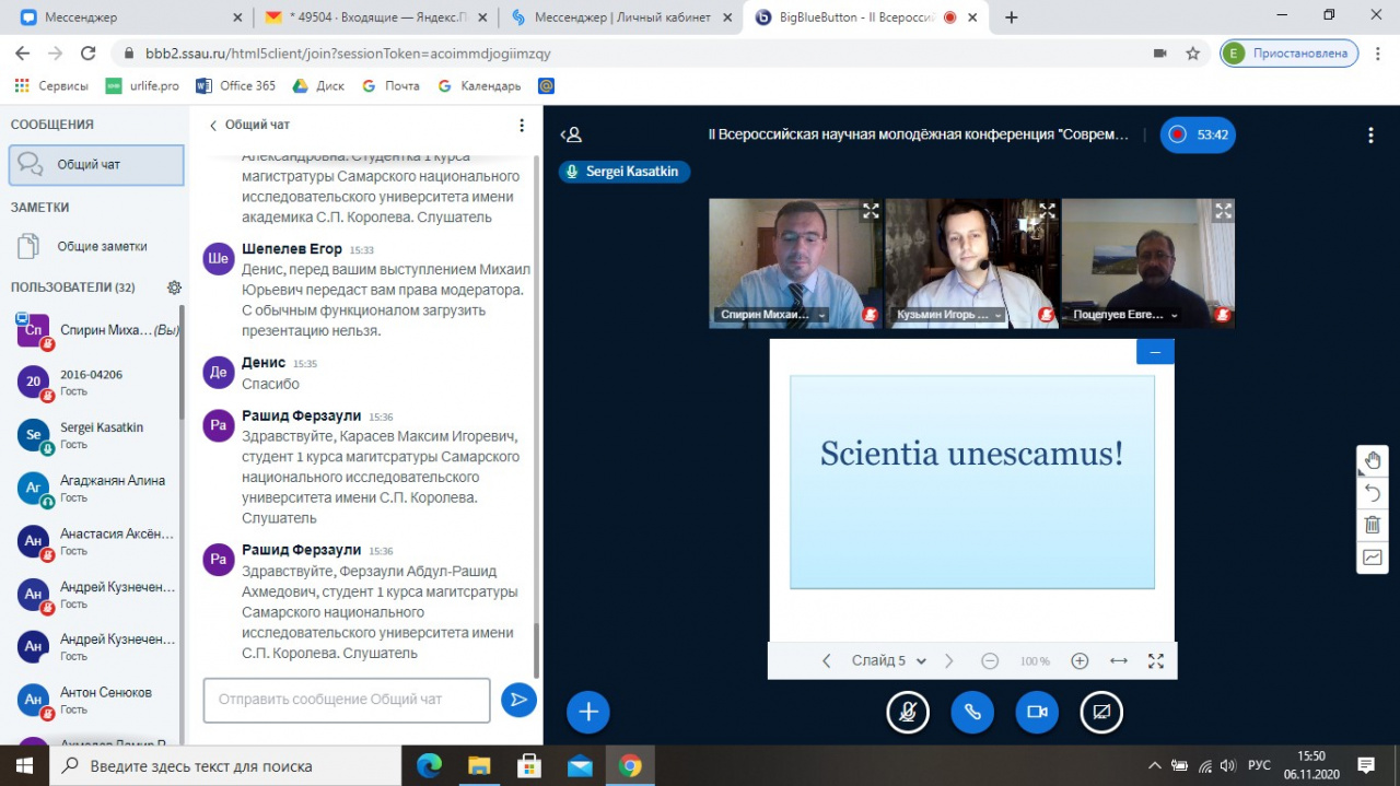 Работа конференции шла в дистанционном формате на базе платформы видеоконференций BigBlueButton и продолжалась с 14:30 до 21:06. Это была плодотворная, напряженная и полезная для обучающихся работа!