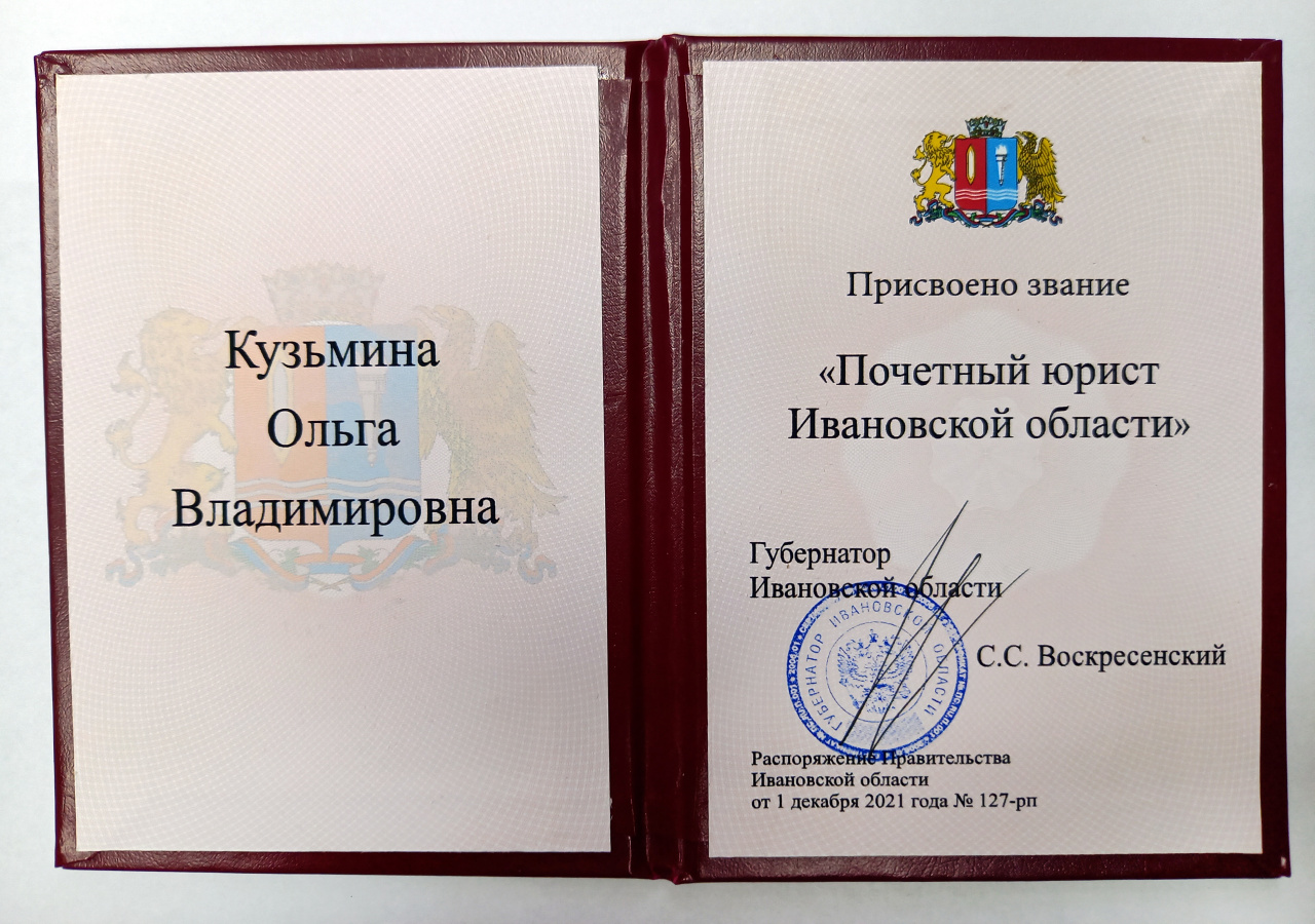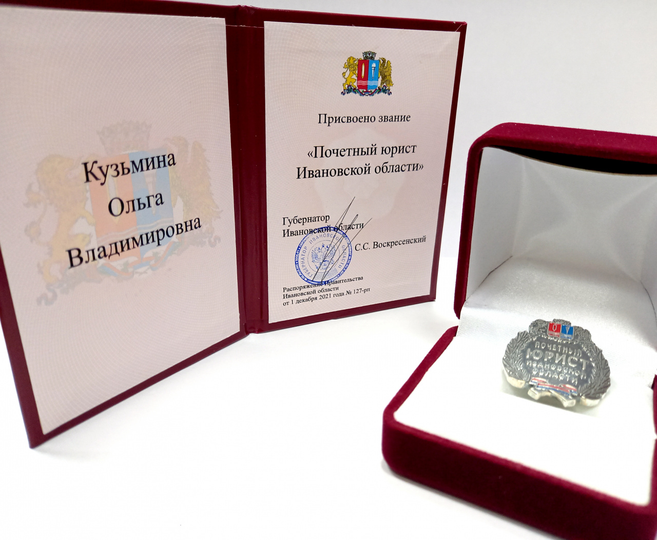 Знак «Почетный юрист Ивановской области» нашел свою хозяйку. 29.12.2021. Фото Е.Л. Поцелуева