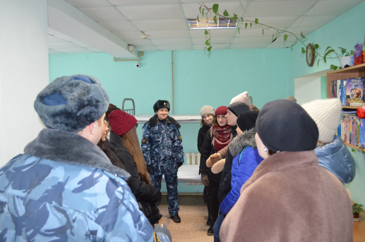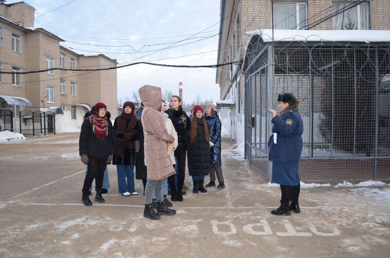 Данная экскурсия была организована не только в учебных целях (студенты в этом семестре изучают дисциплину «Уголовно-исполнительное право»), но и профориентационных. Перед старшекурсниками выступили сотрудники оперативного отдела и отдела кадров УФСИН России по Ивановской области, рассказали о плюсах прохождения службы в уголовно-исполнительной системе, а также о социальных гарантиях, льготах для сотрудников.