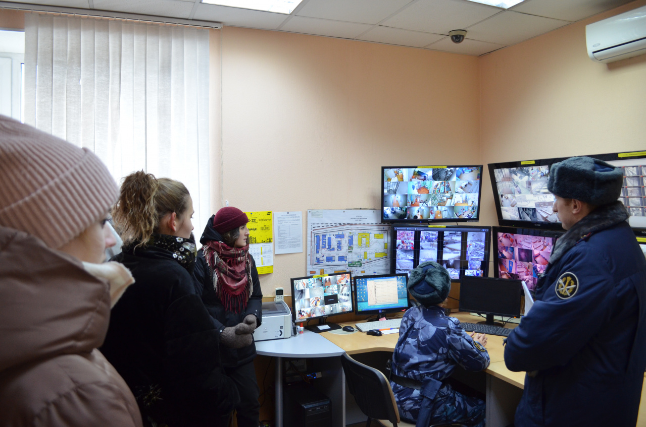 В дежурной части студентам рассказали о функциях отдела безопасности и обеспечении режима на территории колонии. Далее был продемонстрирован пост видеоконтроля.