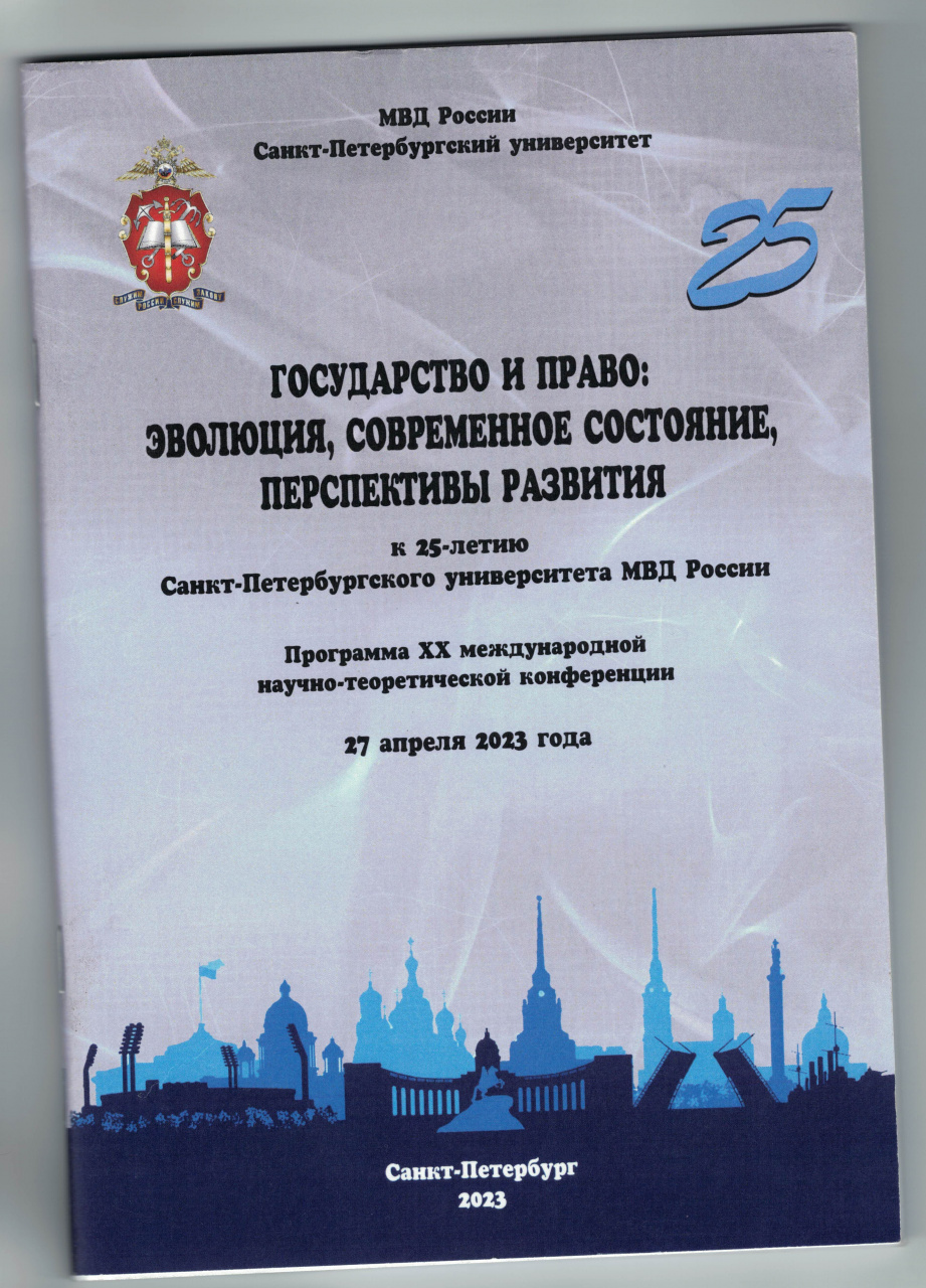 27–28 апреля 2023 г. в Санкт-Петербургском университете МВД России проходила юбилейная XX международная научно-теоретическая конференция «Государство и право: эволюция, современное состояние, перспективы развития (к 25-летию Санкт-Петербургского университета МВД России)», в которой приняли участие зав. кафедрой сравнительного правоведения и правотворчества ИвГУ Е.А. Петрова и профессор кафедры М.Г. Смирнова. С данным вузом у членов кафедры давние научные связи, поскольку они принимали участие еще в первых конференциях, организуемых кафедрой теории государства и права Санкт-Петербургского университета МВД под руководством профессора Р.А. Ромашова.