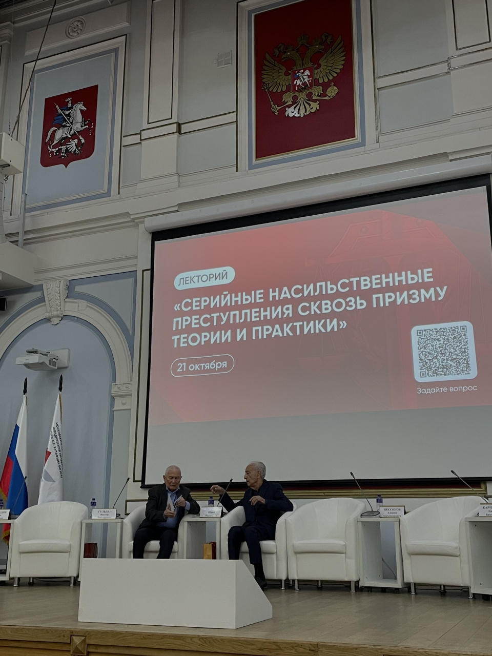 Лекторий «Серийные насильственные преступления сквозь призму теории и практики» стал заключительным мероприятием второго дня Форума. В качестве спикеров выступили такие уникальные эксперты, как Антонян Ю.М., советский и российский ученый-правовед, специалист в области криминологии, психиатрии и юридической психологии, представители Следственного комитета РФ, расследовавшие дела известных советских и российских маньяков.