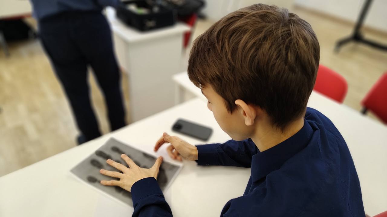 В течение мастер-классов учащимся была предоставлена возможность познакомиться со специальным унифицированным чемоданом «Криминалист», в котором хранится набор средств, необходимых для фиксации и изъятия следов преступления; попробовать самим снять отпечатки пальцев (и даже ушей!), узнать о различных видах преступлений, экспертиз; о том, как визуально, без использования специального оборудования, отличить настоящие банкноты от фальшивых.