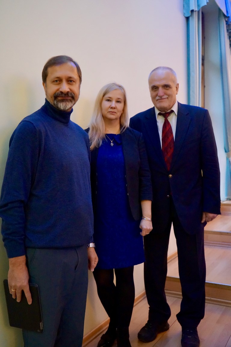 К.и.н, доц. Е.Л. Поцелуев, к.ю.н., доц. Е.А. Агеева и д.ю.н., проф. Г.Г. Бернацкий на Международной научной конференции в Санкт-Петербурге 23.11.2018.