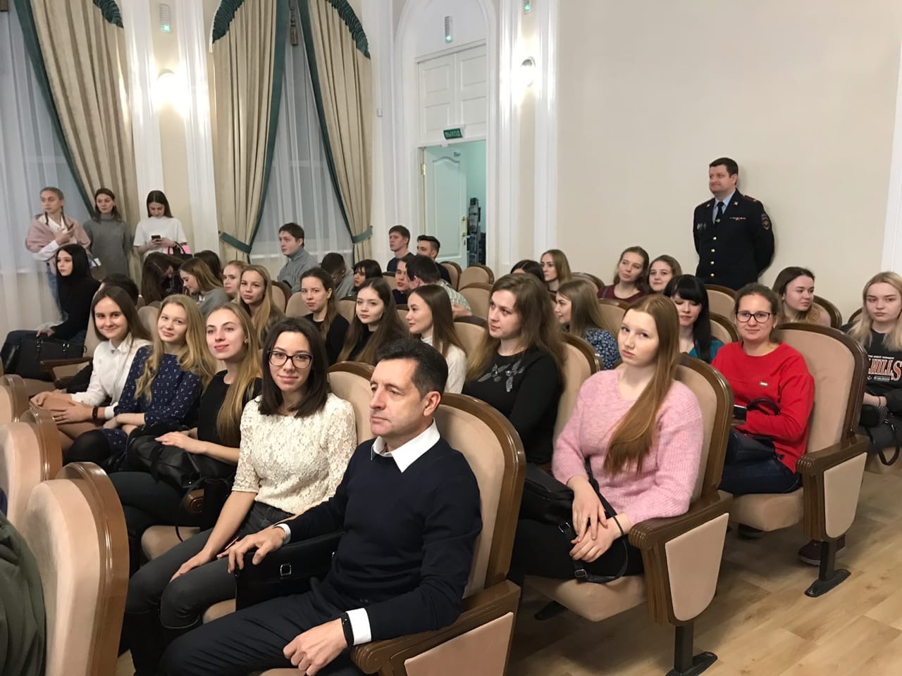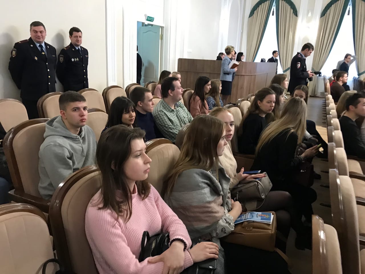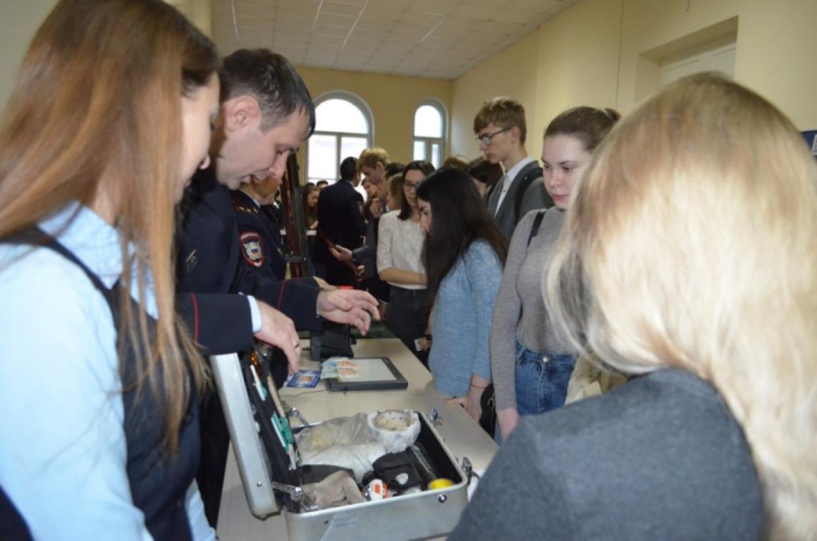 Открыл встречу сотрудников полиции со студентами высших учебных заведений юридического профиля начальник УМВД региона полковник полиции Владимир Жигайло, который рассказал о целях и задачах этого профориентационного форума. С ознакомительными экскурсами перед завтрашними выпускниками и будущими юристами выступили начальник Экспертно-криминалистического центра УМВД Олег Пугин, начальник Управления ГИБДД Роман Головкин, начальник следственного Управления УМВД Петр Балашов, заместитель начальника полиции по оперативной работе Сергей Демидов, начальник отдела организации дознания Татьяна Кормушкина, начальник службы участковых уполномоченных полиции Светлана Афинеевская. Свои выступления опытные и знающие все нюансы профессии руководители облекли в понятную форму и постарались донести до аудитории то, насколько важна и, самое главное, увлекательна профессия сотрудника органов внутренних дел.