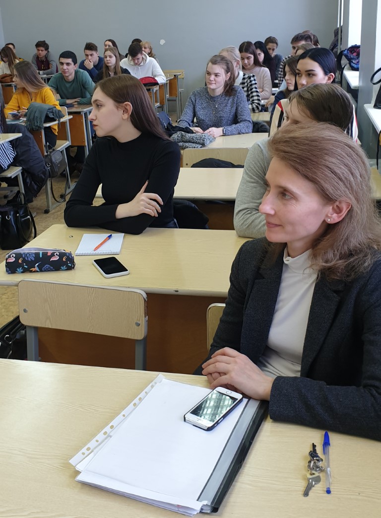 В дискуссии приняли участие зав. кафедрой гражданского права Тресцова Е.В., старший преподаватель кафедры уголовного права и процесса Ковалев С.Е., студент 3 курса бакалавриата М. Семяшкин. С вопросами к выступающим обратились как студенты, так и доценты Соколова О.В., Крутий Е.А., Таибова О.Ю.