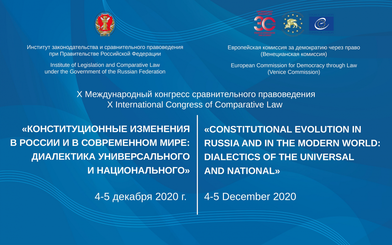 4–5 декабря 2020 г., в преддверии Дня Конституции РФ, Институт законодательства и сравнительного правоведения при Правительстве Российской Федерации (Москва) совместно с Европейской комиссией за демократию через право (Венецианской комиссией) провели юбилейный X Международный конгресс сравнительного правоведения «Конституционные изменения в России и в современном мире: диалектика универсального и национального».