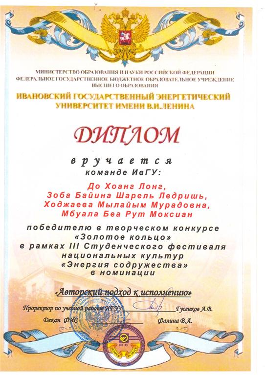 31 марта (в пятницу) в ФГБОУ ВО «Ивановский государственный энергетический университет имени В. И. Ленина» состоялся III Студенческий фестиваль национальных культур «Энергия содружества», целью проведения которого является поиск новых подходов к решению проблемы гармонизации межнациональных отношений в студенческой среде, привлечение внимания студенческого сообщества к вопросам развития национальных культур, роли культуры во всём мире. В этом году в мероприятии приняли участие иностранные студенты из разных университетов города Иваново, Ивановской области и Костромы. Наше высшее учебное заведение (под руководством доцента кафедры практического русского языка Мельниковой Арины Юрьевны) представили две команды (каждая из четырёх человек).