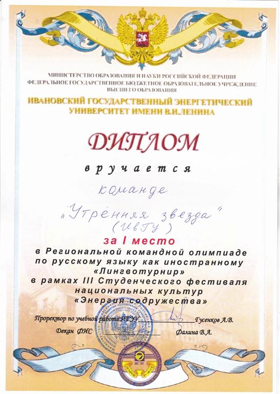 В следующем конкурсе («Лингвотурнир») оценивалось знание русского языка и русской культуры. В нём вновь приняли участие 8 команд из разных высших учебных заведений. В состав нашей команды, которая называлась «Утренняя звезда», вошли: