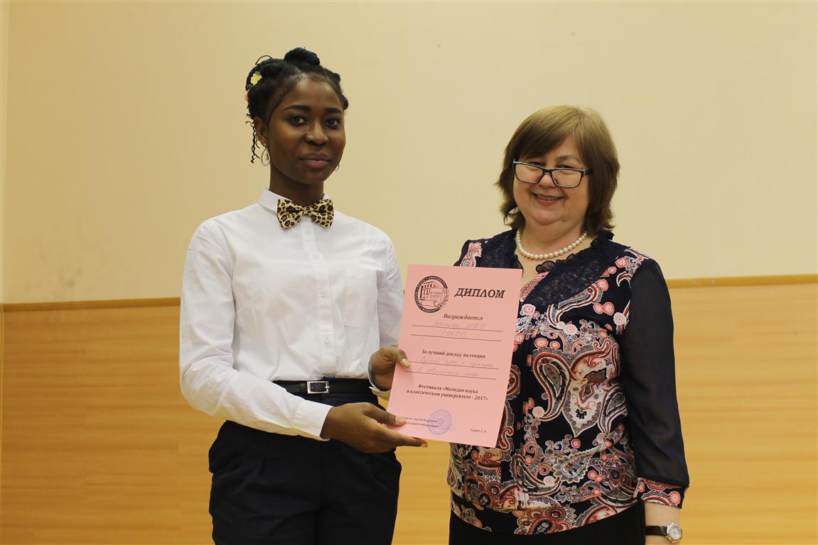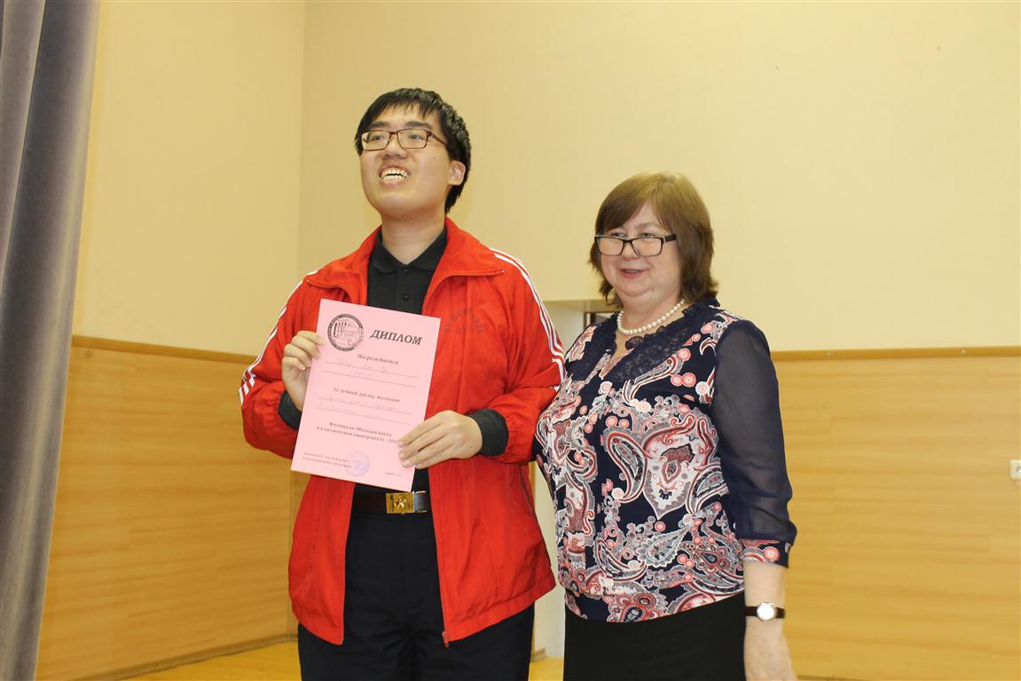 Выступление на конференции для многих студентов было очень волнующим, ведь для кого-то она стала научным дебютом, а для кого-то – очередной возможностью апробировать результаты исследовательской деятельности. Наилучшие доклады были отмечены наградами. Например, в рамках секции «Русский язык и культура в современном мире» дипломы получили Аннакулыев Н. М. (Туркменистан, ИГЭУ, руководитель Токарева Г. В.), Киеу Ань Ву (Вьетнам, ИвГУ, руководитель Канафиев Ринат Нуруллаевич), Ебонги Ломиги Мареш Каршелэн (Конго, ИвГУ, руководитель Мельникова А. Ю.), Зоба Байина Шарель Ледришь (Конго, ИвГУ, руководитель Фархутдинова Ф. Ф.), Мбуала Беа Рут Моксиан (Конго, ИвГУ, руководитель Антипина Е. С.).