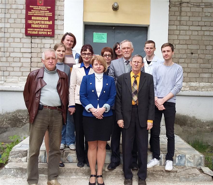 Коллектив кафедры физической химии ИвГУ в 2009 году. В верхнем ряду (слева направо): проф. Иванов С.Н., доц. Петров В.М., вед. инж. Милосердова И.В., зав. кафедрой, проф. Гиричева Н.И., вед. инж. Рогозин В.А. В нижнем ряду: вед. документовед Медведева Ю.С., асп. Лапыкина Е.А., проф. Курицын Л.В., асп. Бардина А.В., доц. Садовников А.И.