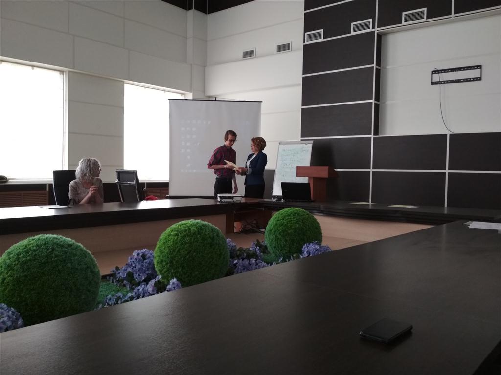 Вручение диплома за лучший устный доклад студенту 4-го курса И.А. Филиппову