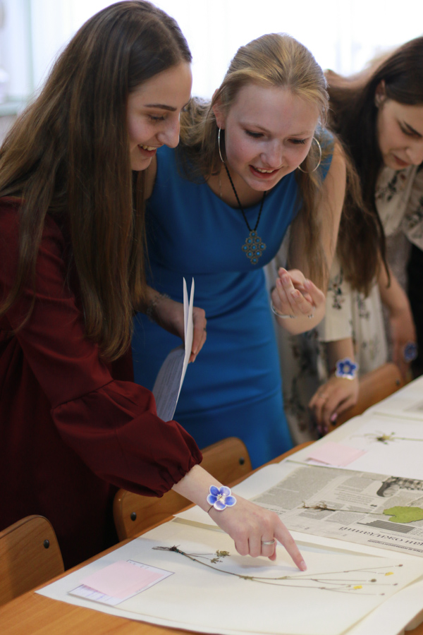 Для ребят в духе времени старшекурсниками был устроен увлекательный квест на проверку биологических компетенций, с которым они справились просто блестяще. Студенты представили свои визитные карточки, эмблемы, песни. Но на этом всё самое интересное не закончилось… Преподаватели кафедры провели традиционные завораживающие обряды посвящения с приворотным (к кафедре) зельем, шуточными клятвами, выдачей зоологических и ботанических паспортов, этикеток. Каждый новый член большой и дружной кафедральной семьи получил в подарок от заведующей кафедрой и руководителя образовательной программы Л.Ю. Минеевой вместе с добрыми напутствиями сборник студенческого биологического фольклора «Симбиоз». Потом было веселое чаепитие с большим тортом, в дизайне которого нашли отражение строение цветка и следы лап различных животных. И, конечно, фотосессия.