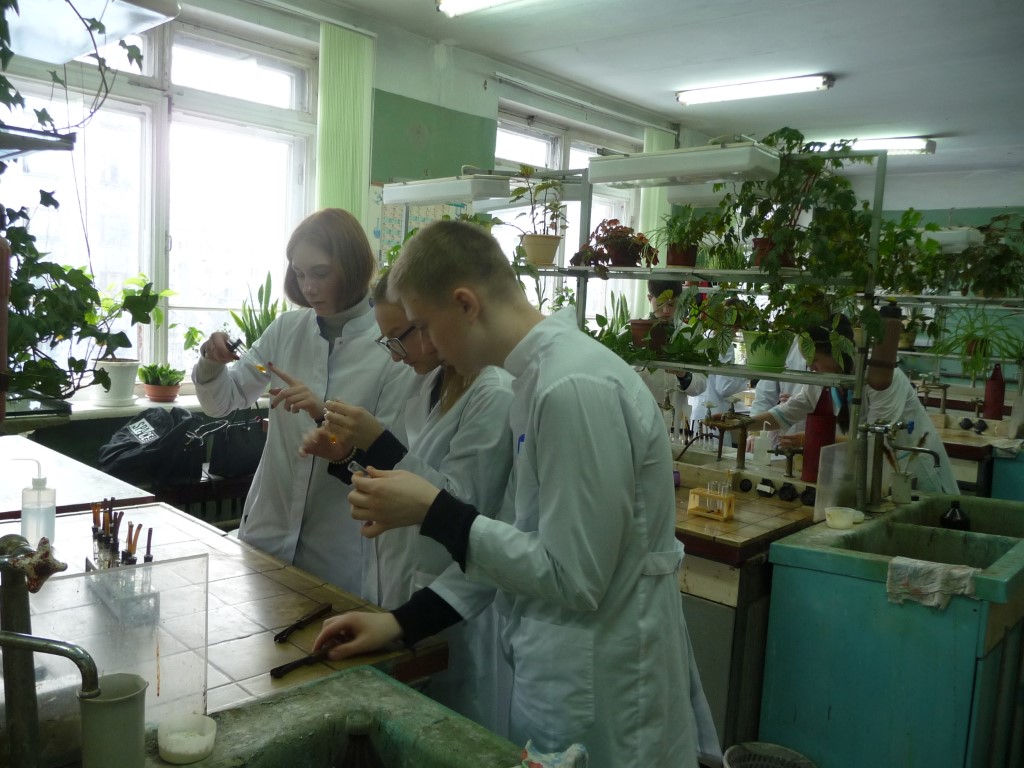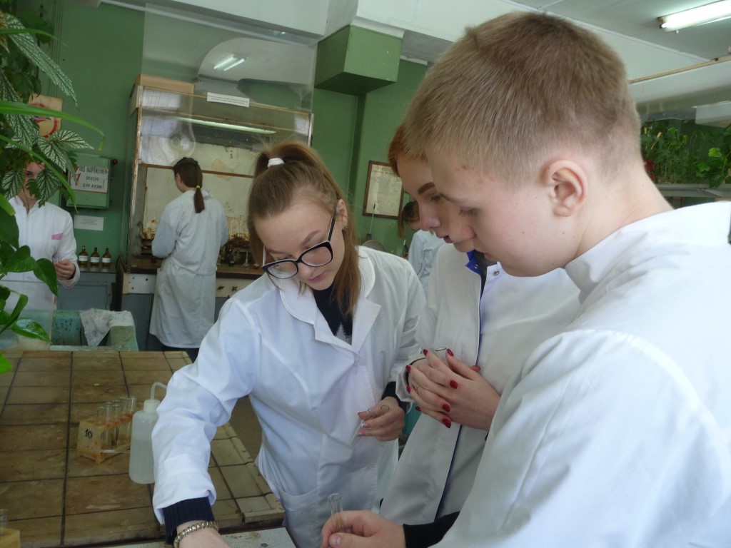 Девятиклассники знакомились с химической посудой и осваивали азы титриметрического анализа, а также определяли временную и общую жесткость воды. Ребята из 10–11 классов решали сложные расчетные задачи, учились писать «цепочки» органических реакций, узнали об особенностях строения и свойствах комплексных соединений. Лабораторный практикум включал качественный анализ углеводов, аминов и аминокислот.