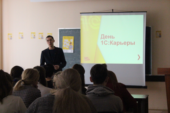 В Программе «Дня 1С:Карьера» были предусмотрены четыре мастер-класса. Наибольший интерес вызвал мастер-класс «Облачные технологии 1С:Предприятия 8.3» на примере новой технологии «1С:Fresh», который провели магистранты Бойков А. и Еловских Н. Их тема заинтересовала 46 слушателей. Студенты 4 курса Родионычева Е., Любавина М., Бушмакина Е., Сафонова А., Морозова Д., и Цветков А. провели мастер-классы «“1С:Медицина. Больница”: персональный подход к пациенту», «“1С: Школа” – открываем школу по-новому», «Обеспечение безопасности условий труда посредством внедрения “1С:Производственная Безопасность. Охрана Труда” – как способ снижения производственного травматизма». Все докладчики являются обладателями сертификата Профессионал фирмы «1С».