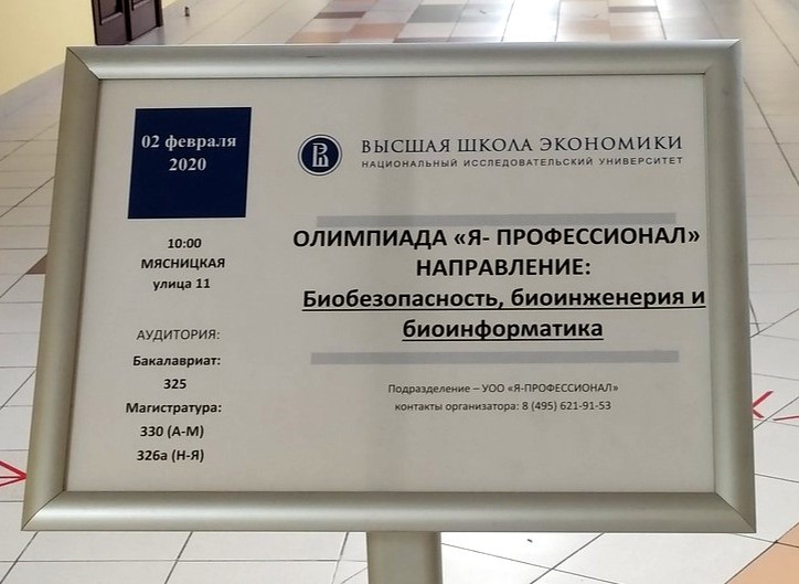 Любавина Мария – направления «Программная инженерия» 31 января 2020 г. и «Биобезопасность, биоинженерия и биоинформатика» 2 февраля 2020 г. в Высшей Школе Экономики (Москва);