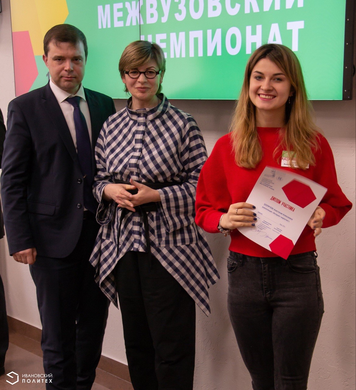 19–22 марта в Ивановском политехническом университете прошел первый открытый межвузовский чемпионат по стандартам World Skills. Студентка 3 курса направленности «Экономика предприятий и организаций» (кафедра экономики и организации предпринимательства ИвГУ) Анастасия Шоличева получила Медальон за профессионализм в компетенции «Интернет-маркетинг».