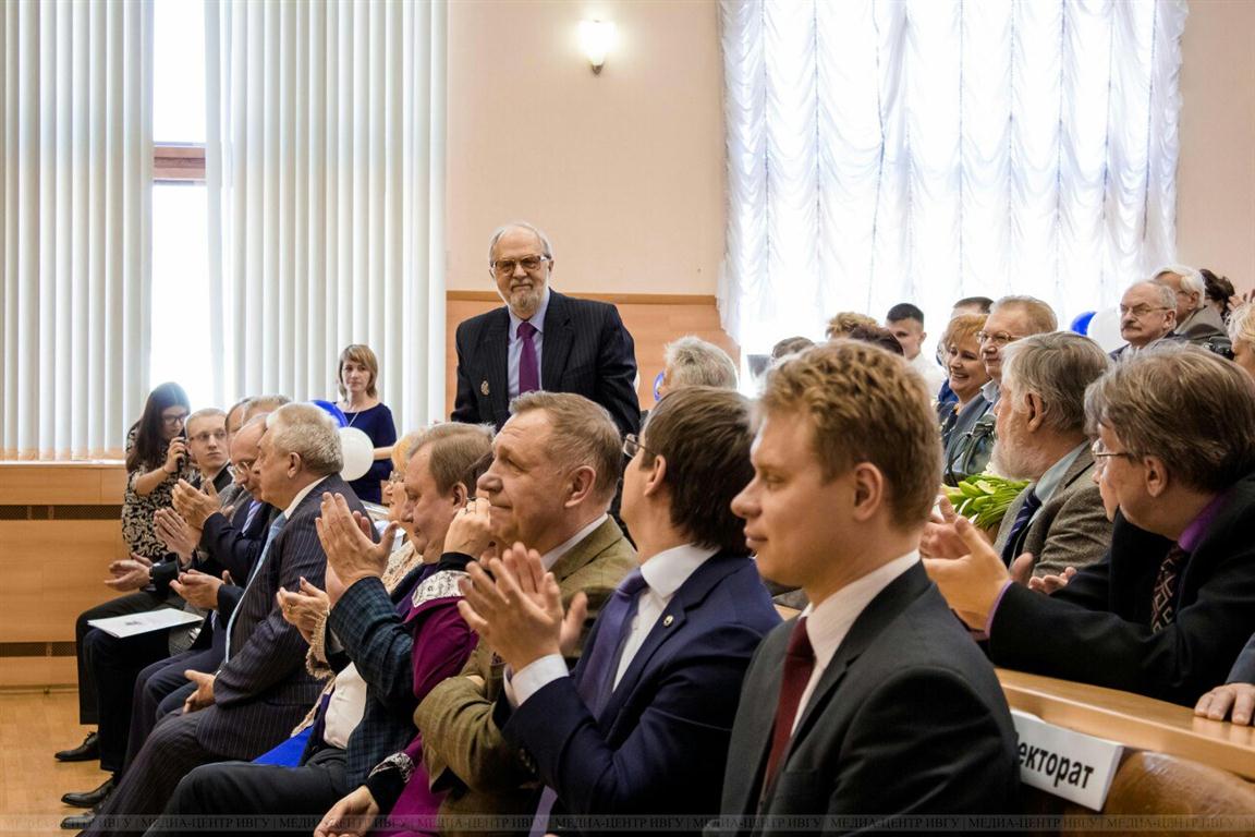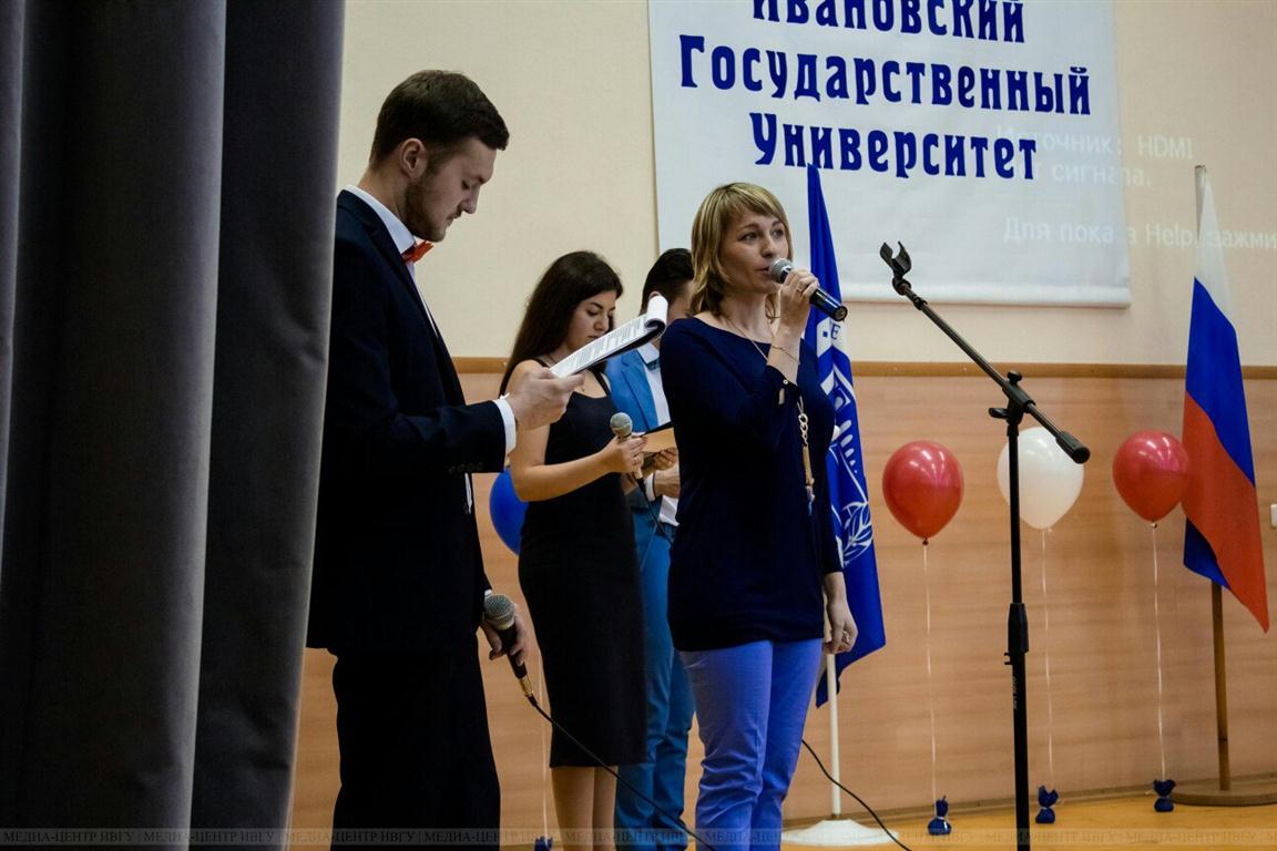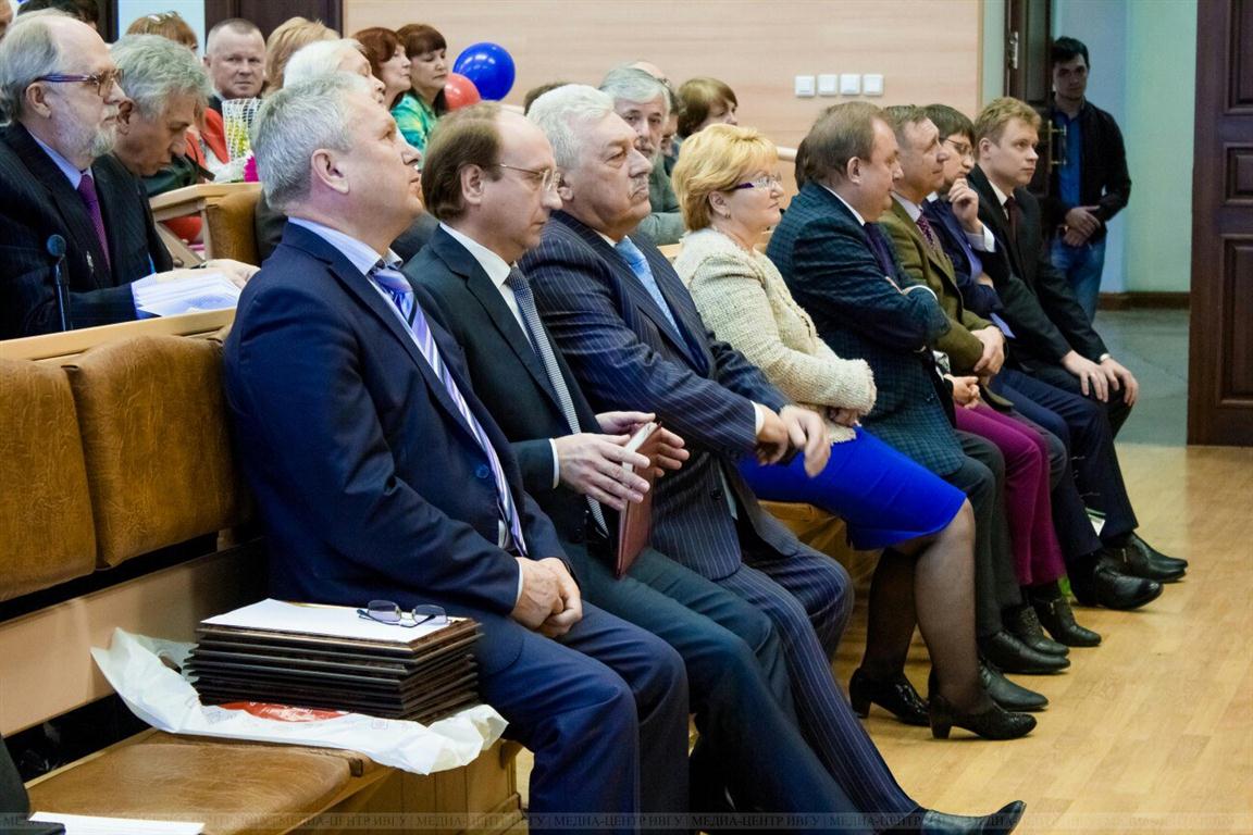 Этот прекрасный день с нами отмечали почетные гости: председатель комитета по экономическому развитию Ивановской областной Думы Ефремов Роман Александрович, председатель Ивановской городской Думы Кузьмичев Александр Станиславович, генеральный директор Союза промышленников и предпринимателей Ивановской области Жбанов Алексей Юрьевич, управляющий Ивановского отделения Сбербанка Дорошенко Виталий Александрович, Президент Торгово-промышленной палаты Ивановской области Иванов Леонид Геннадьевич и заместитель генерального директора НПО «Консультант» Алексеев Виктор Борисович. Коллективу преподавателей за многолетний плодотворный труд были вручены благодарственные письма от Губернатора Ивановской области, Департамента образования, Почетные грамоты Администрации г. Иваново, Городской Думы, Союза промышленников и предпринимателей, Торгово-промышленной палаты Ивановской области. Со сцены звучало много теплых слов и пожеланий факультету от гостей праздника, поскольку большинство из них являются его выпускниками. Факультет в свою очередь не остался в стороне и поблагодарил наших друзей и партнеров за многолетнее и плодотворное сотрудничество.