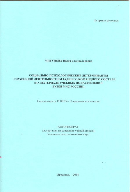 3. Преподаватели кафедры участвовали в работе диссертационного совета Д 999.051.02 (г. Ярославль). Была защищена докторская диссертация (А.А. Карпов, «Структурно-функциональная организация метакогнитивной сферы личности в управленческой деятельности»). В дискуссии приняли участие В.Д. Шадриков –научный консультант (академик РАО, д-р психол. наук, заслуженный работник высшей школы), профессор Занковский А.Н. (зав. лаб. психологии труда, эргономики, инженерной и организационной психол. Института психологии РАН, автор учебного пособия «Организационная психология»), профессор Акопов Г.В., заведующий каф. общей и социальной психологии ФГБОУ ВО «Самарский государственный социально-психологический университет»), профессор Синягин Ю.В. (научный руководитель факультета оценки и развития управленческих кадров Высшей школы государственного управления, зав. каф. психологии личности в системах управления – ФГБОУ ВО «Российская академия народного хозяйства и государственной службы при Президенте Российской федерации»). Ведущей организацией выступил МГУ.