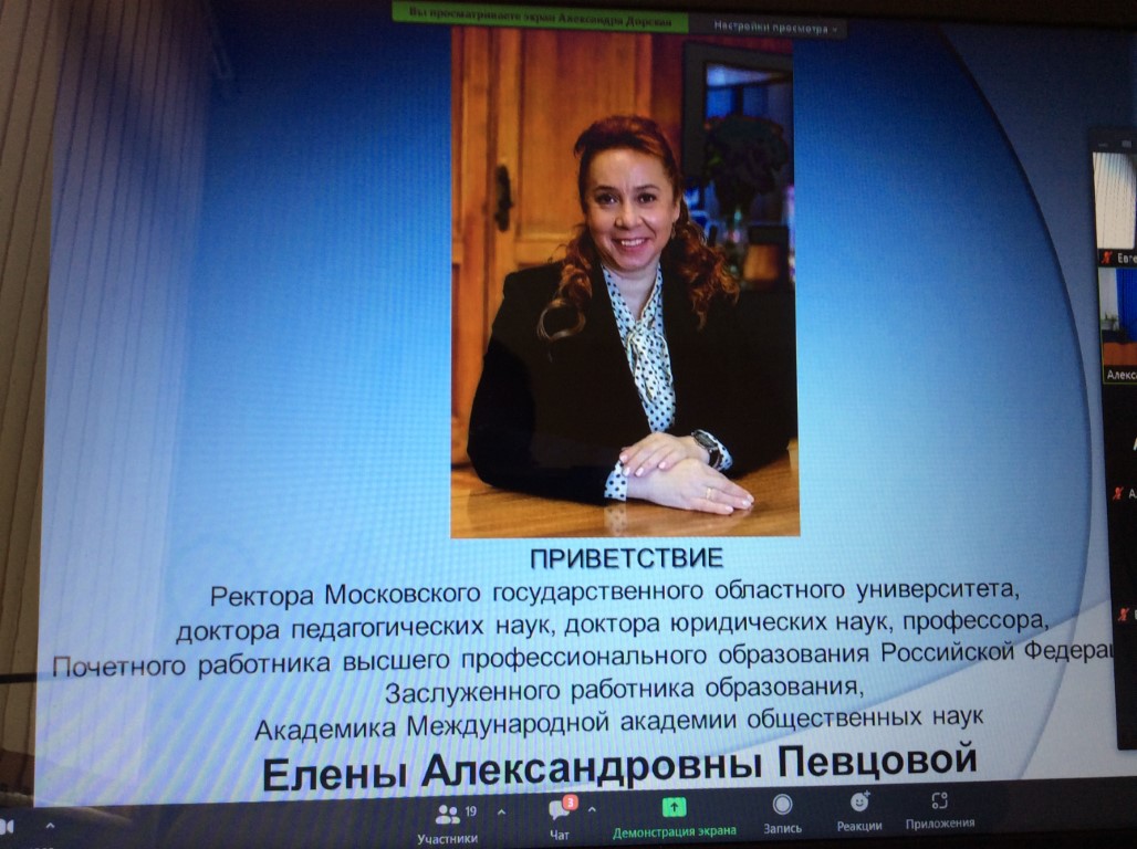 Приветствие ректора Московского государственного областного университета Е.А. Певцовой. Фото Е. Поцелуева