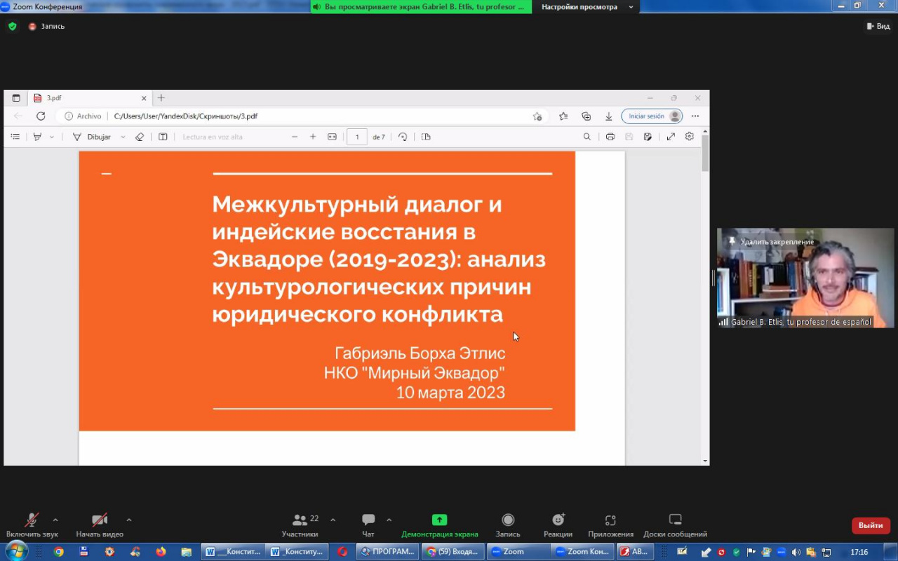 Презентация доклада Э.Г. Э. Борха (Эквадор, г. Куэнка). 10.03.23. Фото А.В. Ильина