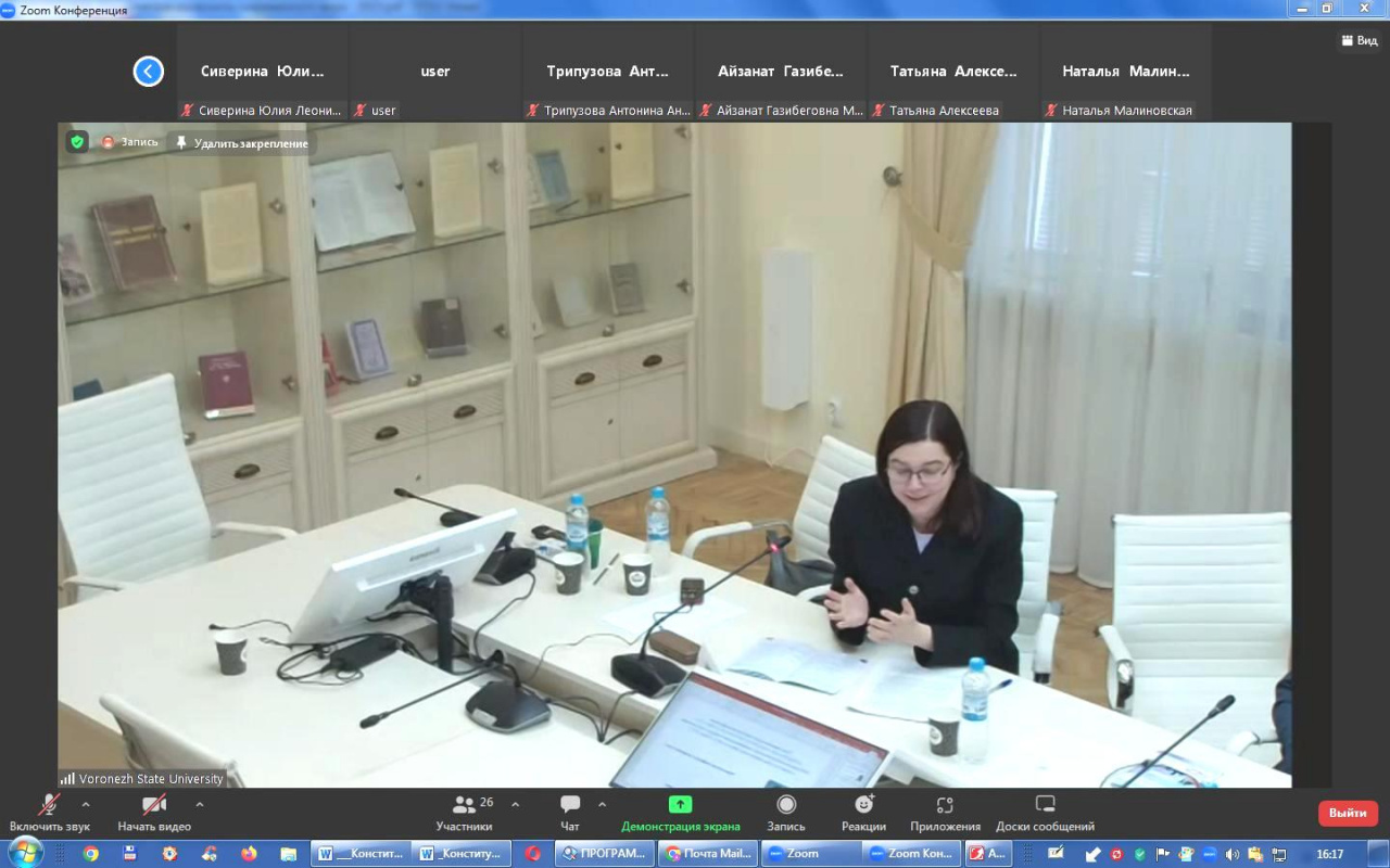 Модератор конференции, канд. юрид. наук, доц. Н.В. Малиновская. ВГУ. 10.03.23. Фото А.В. Ильина