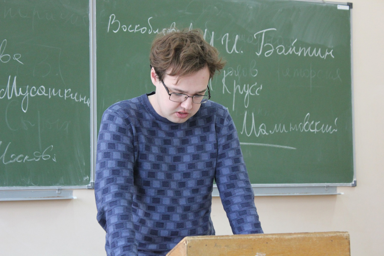 - Олег Денисов (1-й курс бакалавриата) с содержательным докладом о принципе состязательности в российском судопроизводстве;