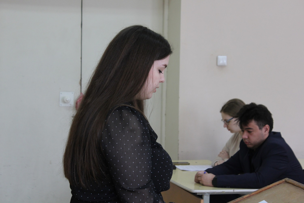 - Юлия Семейкина (4-й курс бакалавриата) с докладом на дискуссионную проблему «Практика высших студентов РФ как источник права».
