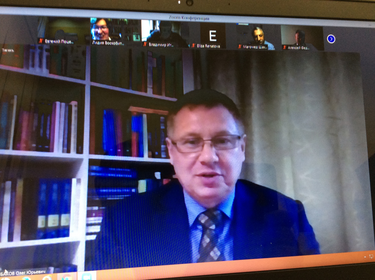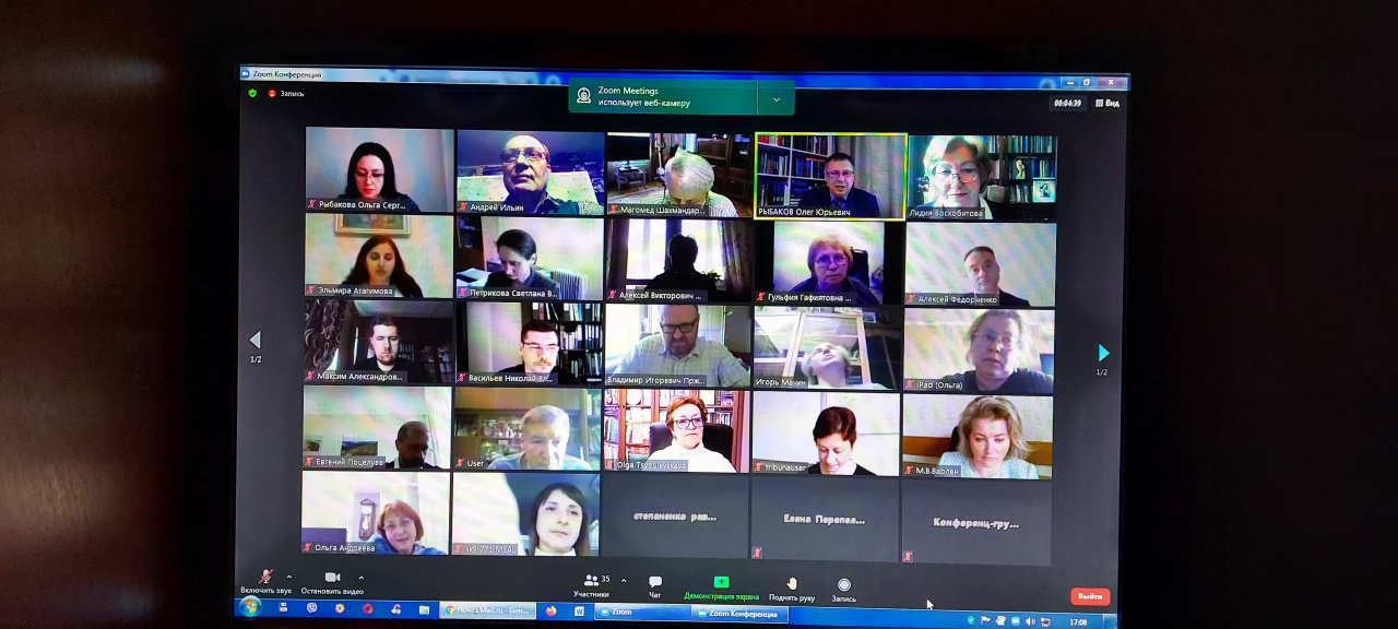 Несколько вопросов было задано профессорами, докторами наук О.Ю. Рыбаковым, В.М. Артемовым и В.И. Пржиленским из МГЮА, О.В. Мулюковой и О.И. Цыбулевской из Саратова и др. Среди слушателей были кандидаты юридических наук, доценты А.В. Ильин (много лет успешно руководил ВАКовским журналом «Известия вузов. Правоведение», С.-Петербург), И.Ф. Мачин (МГУ им. М.В. Ломоносова, преподает и в одном из вузов Еревана, автор учебников по истории политических и правовых учений, постоянный участник ежегодных международных научных конференций, организуемых на юридическом факультете ИвГУ Е.Л. Поцелуевым), О.В. Кузьмина (первый проректор ИвГУ, заведующий кафедрой уголовного права и процесса юридического факультета ИвГУ, кандидат юридических наук, доцент), кандидаты философских наук, доценты М.А. Беляев (также участник конференций Е.Л. Поцелуева) и М.Ш. Гунибский (оба – МГЮА), другие российские и белорусские ученые. В этом проекте 28 апреля было задействовано 30 исследователей и работа продолжалась в режиме видеоконференции более трех с половиной часов.