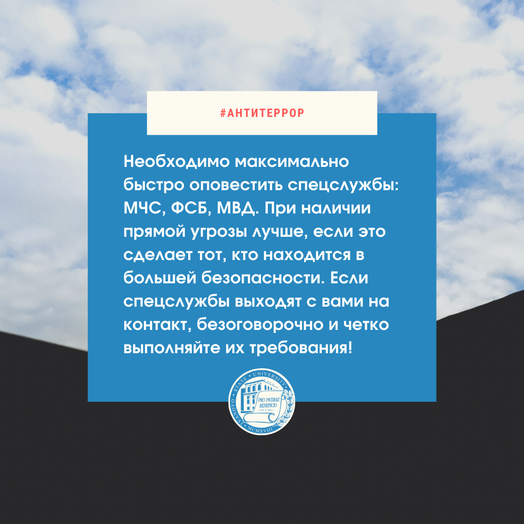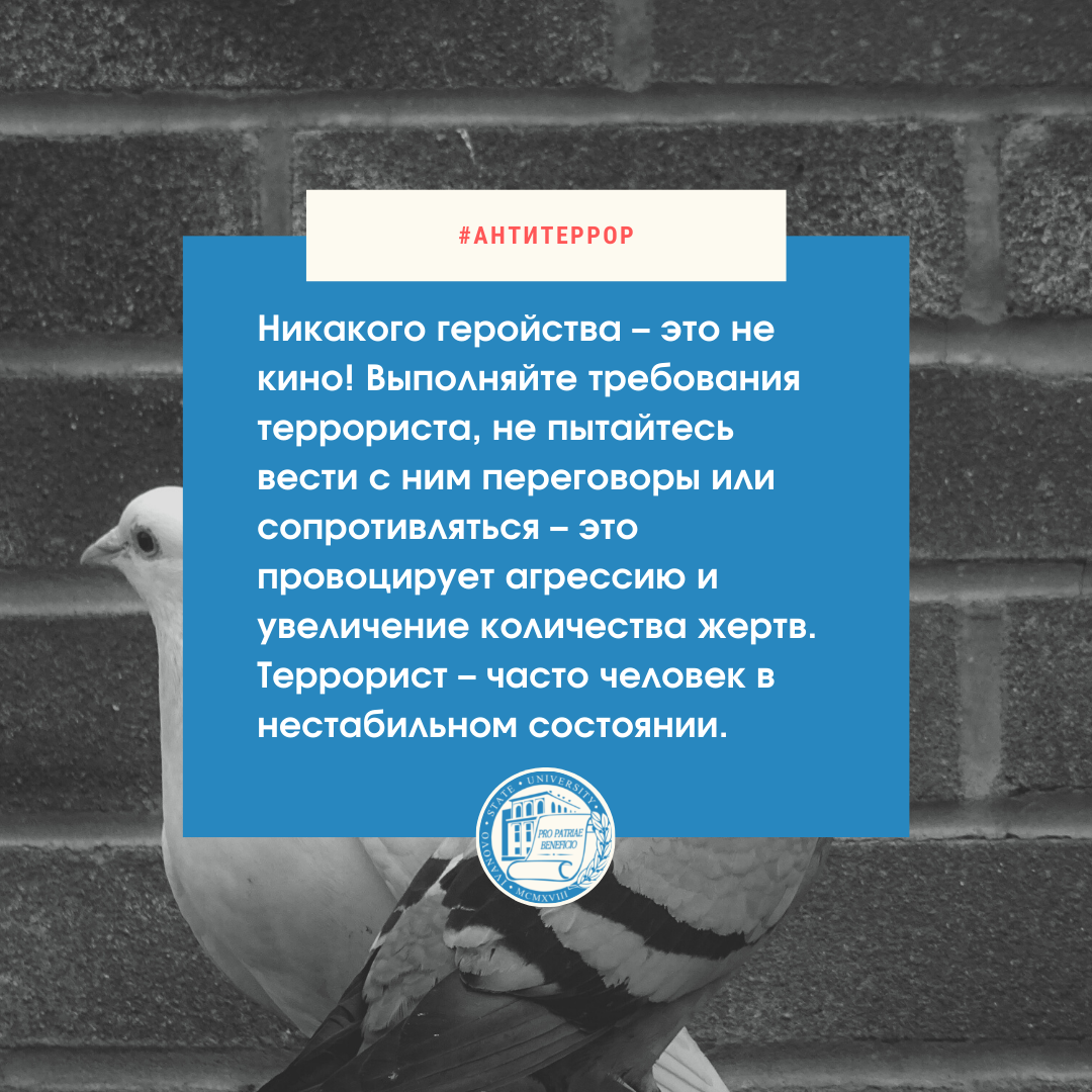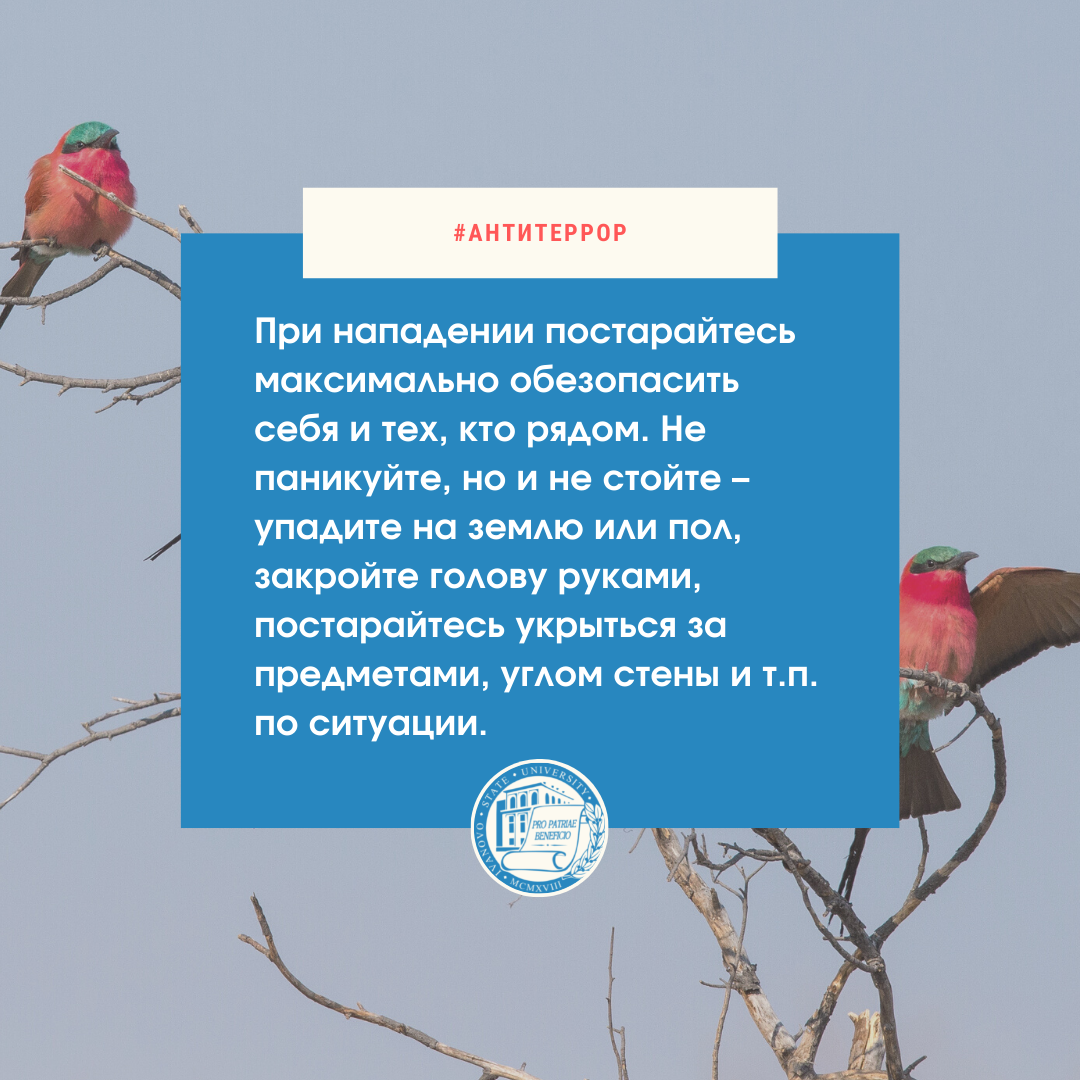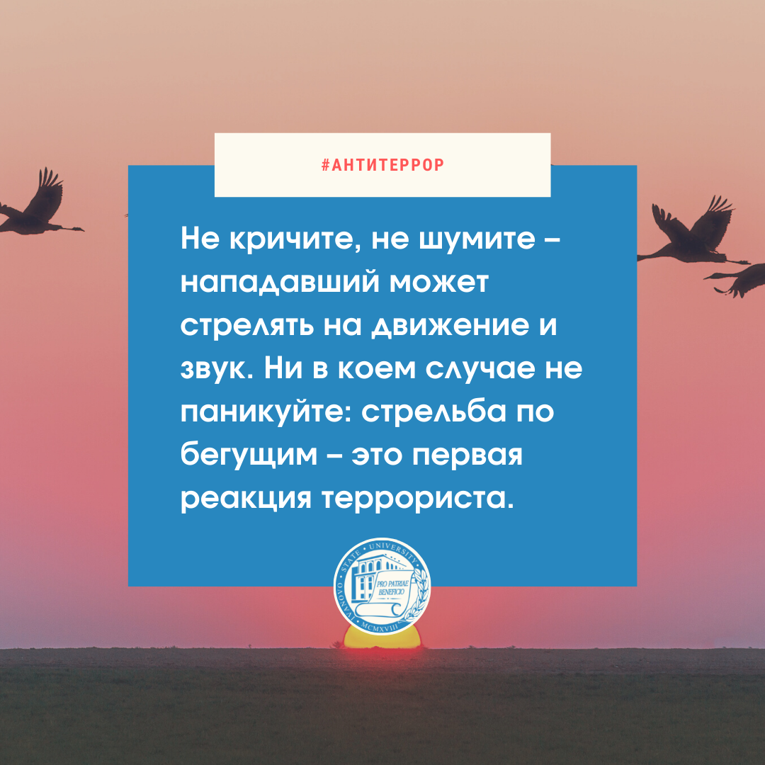 Эта трагедия никого не должна оставить равнодушным – но не менее важно помнить, как необходимо вести себя при террористической попытке атаки или захвата учебного заведения. Искренне надеемся избежать подобного, однако стоит знать следующее (см. информацию на карточках).