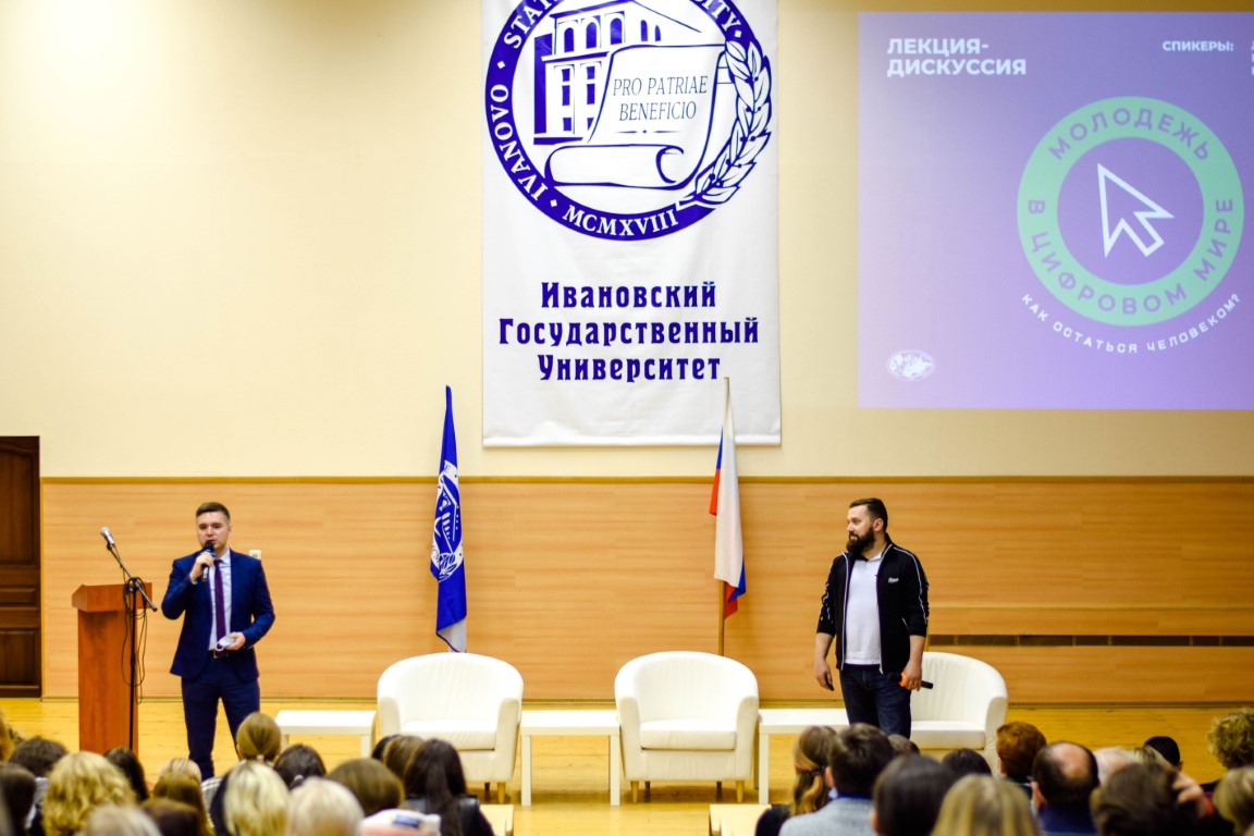 27 сентября в актовом зале 1-го учебного корпуса прошла лекция-дискуссия в рамках проекта Института стратегических исследований и прогнозов РУДН «Молодежь в цифровом мире: как остаться человеком?». В качестве экспертов-спикеров выступили руководитель ИСИП РУДН Дмитрий Егорченков, его заместители Павел Фельдман и Никита Данюк.