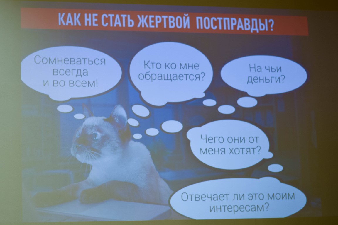 Как не стать жертвой агрессивной «постправды»? Дмитрий Егорченков подытожил: «Если в вашем цифровом мире вдруг стало светло, тепло и комфортно, вы, скорее всего, являетесь объектом манипуляции. Будьте критичны, старайтесь диверсифицировать источники информации. По словам автора «Дюны» Ф. Герберта, человек отличается от животного умением контролировать собственные эмоции» – т.е. не поддаваться их диктату, но опираться на критическую рациональность.