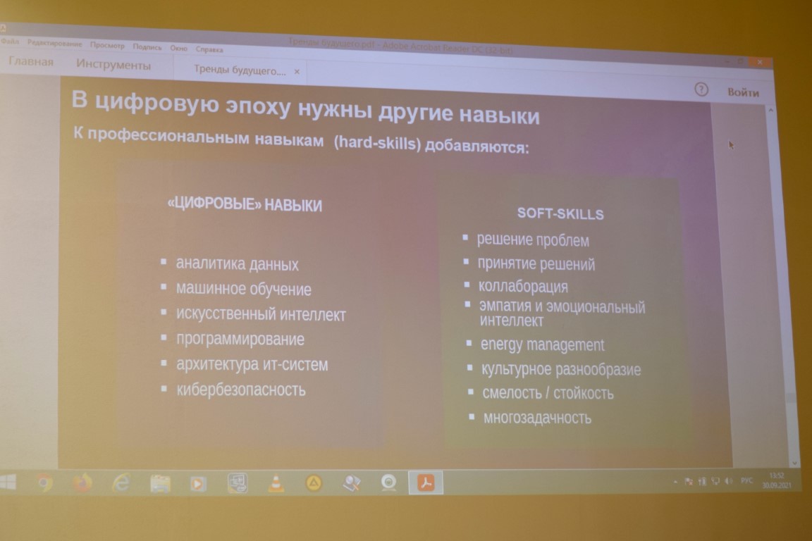 Зато чрезвычайно показательными были слайды с «Атласом новых профессий» и «В цифровую эпоху нужны другие навыки»: формирование «цифровых навыков» и особенно «soft-skills» не только указывает молодому поколению магистральный путь самореализации в стремительно меняющемся «цифровом мире», но и показывает «собственно-человеческий» потенциал в преддверии «технологической сингулярности» – завораживающей и пугающей одновременно. «Это наше ближайшее будущее, и мы должны быть к этому готовы, должны научиться меняться», – подытожила Светлана Сергеевна свою лекцию, и с таким посылом трудно не согласиться. Благодарим нашего спикера и ее команду за яркое выступление – а также за приглашение студентов на работу в «Сбербанк» и раздачу всем зарегистрировавшимся присутствовавшим персональных бонусных промо-кодов на покупки в «СберМегаМаркете»!
