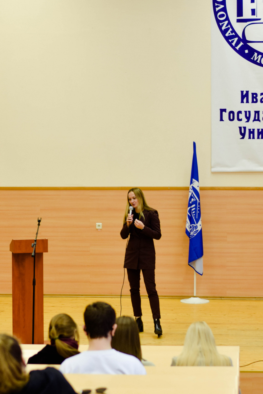 30 сентября в актовом зале 1-го учебного корпуса состоялась встреча студентов различных направлений подготовки с начальником управления прямых продаж «Сбербанка» (Ивановское отделение) Пелевиной Светланой Сергеевной, членом Совета Ассоциации выпускников ИвГУ.