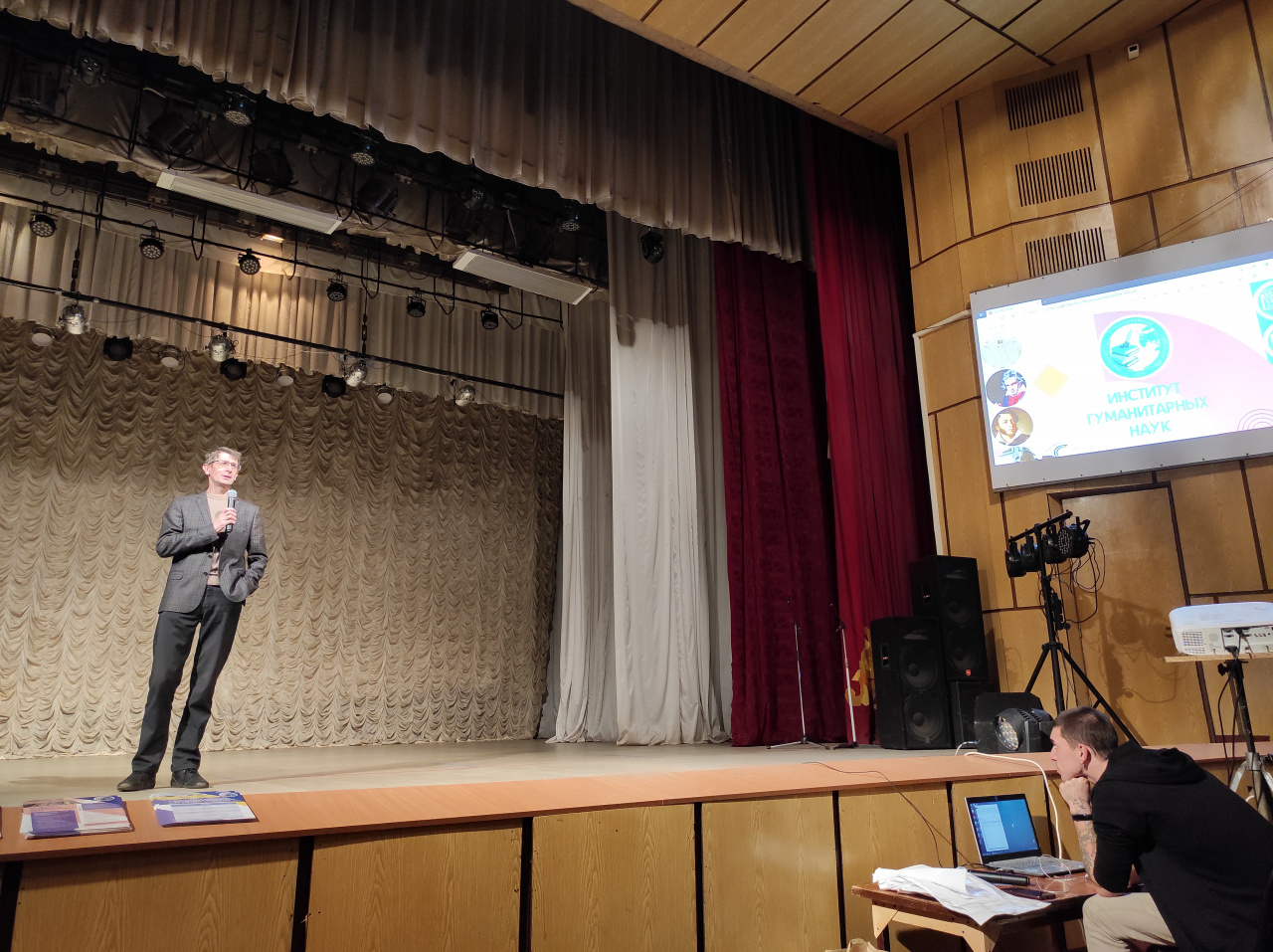 ИГН представлял заместитель директора института по научно-исследовательской деятельности, доктор исторических наук, профессор кафедры всеобщей истории и международных отношений В.М. Тюленев; ИСЭН – заместитель директора института по учебно-воспитательной работе, кандидат экономических наук, доцент кафедры социологии, социальной работы и управления персоналом О.О. Коробова; ИМИТиЕН – старший преподаватель кафедры биологии, председатель Совета молодых ученых ИвГУ, секретарь Научно-технического совета А.Н. Сивухин; юридический факультет – декан, кандидат юридических наук, доцент кафедры уголовного права и процесса О.В. Соколова; КОСС – студент 4-го курса ИГН («Психолого-педагогическое образование») Роман Пирогов. Гуманитарные направления, специальности естественнонаучного характера, актуальная социально-экономическая сфера, юридическое образование – всё было освещено в ярких презентациях и вызвало большой интерес школьников, среди которых, надеемся, окажется в недалеком будущем много наших абитуриентов!