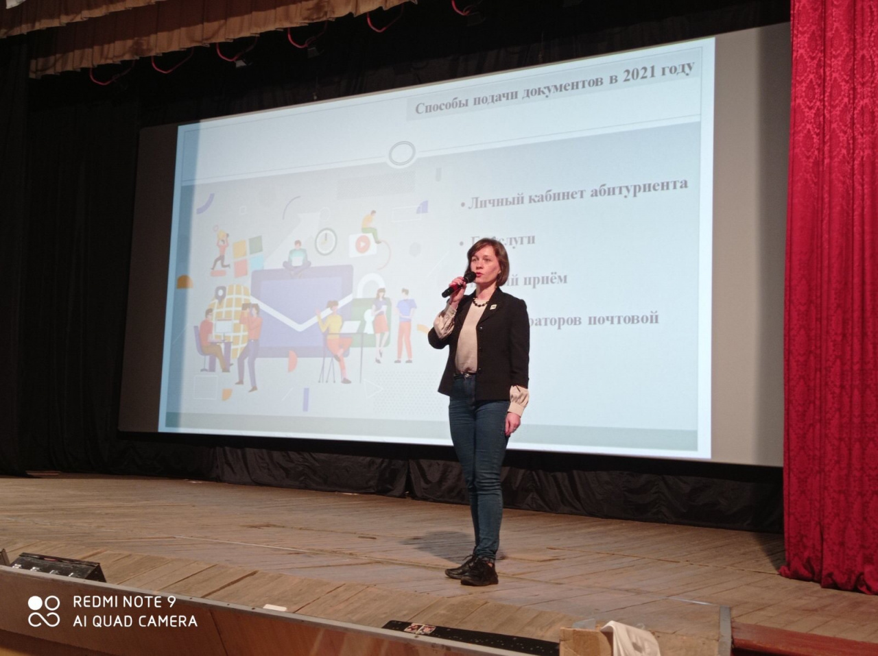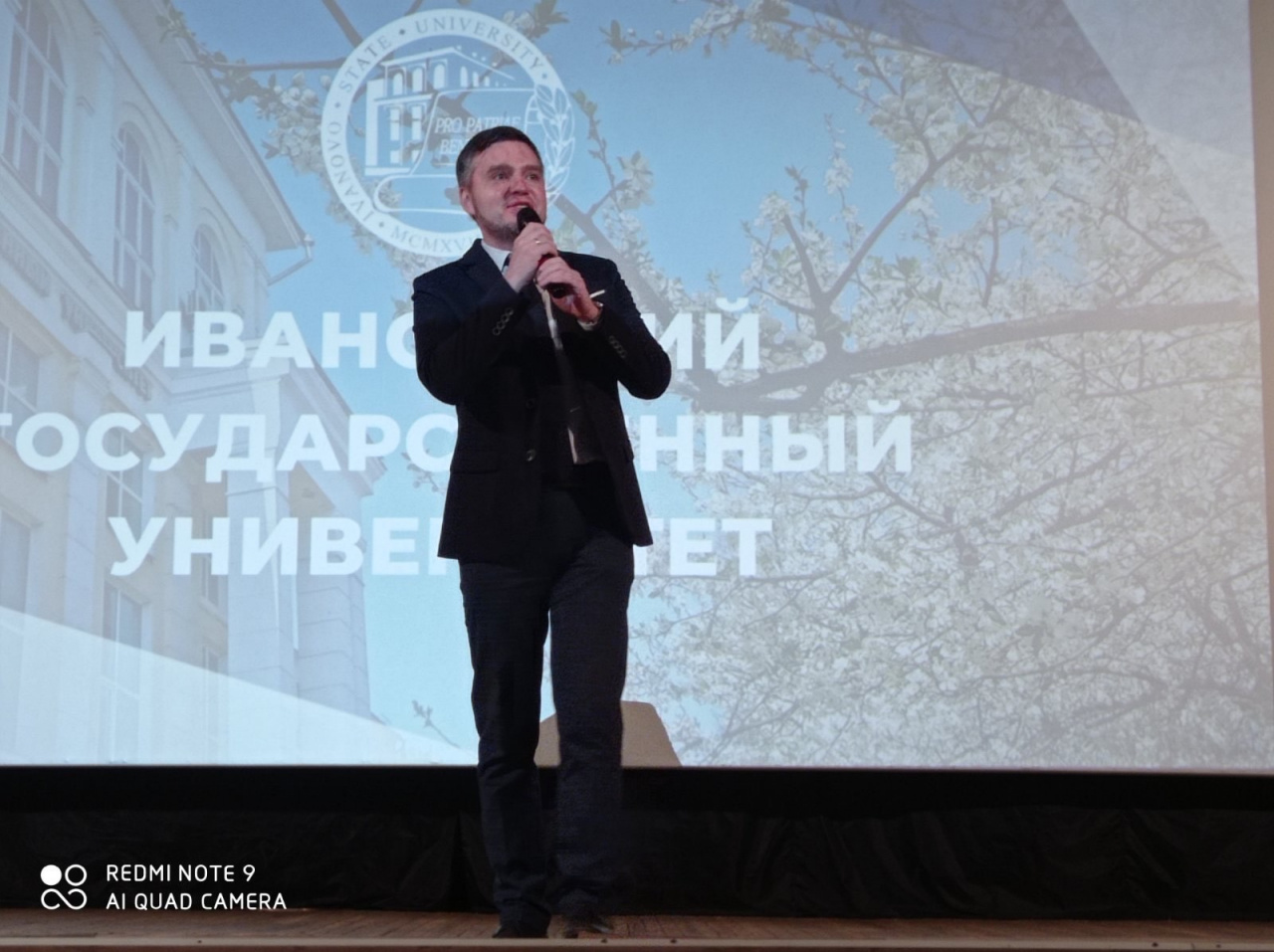 Встреча с более чем 60 школьниками из 4 выпускных классов Вичуги и Вичугского муниципального района прошла в ДК «Машиностроитель». Сначала проректор ИвГУ по социальному развитию и международной деятельности Н.Д. Сорокин кратко рассказал о преимуществах ИвГУ, познакомил будущих абитуриентов с перспективами поступления и обучения и пригласил всех на предстоящий День открытых дверей 14 ноября. А затем выступали представители институтов, юридического факультета и студенчества.