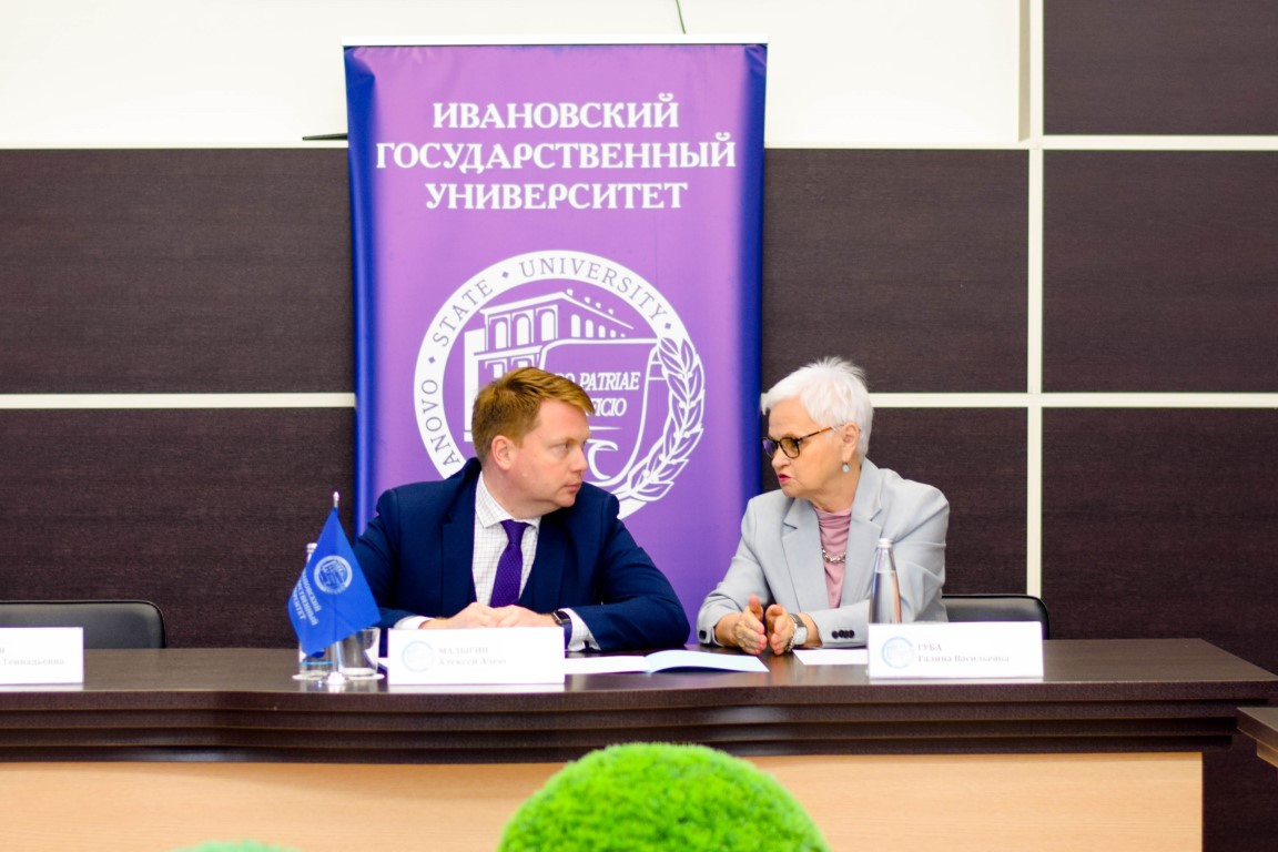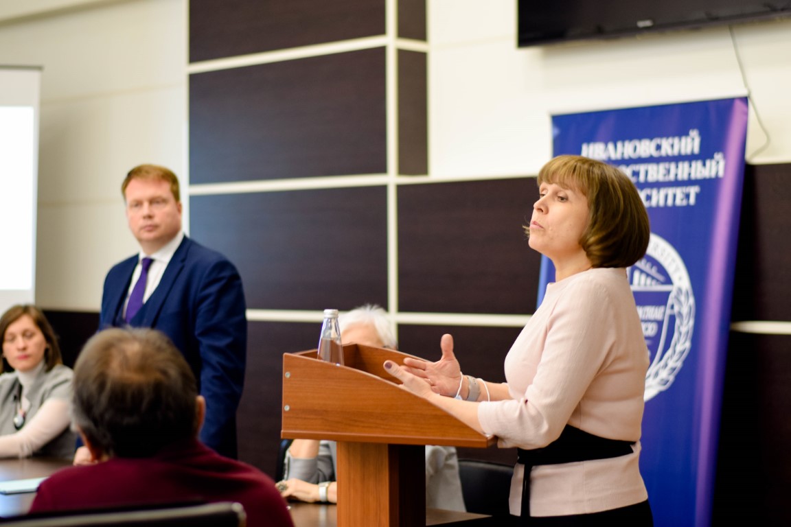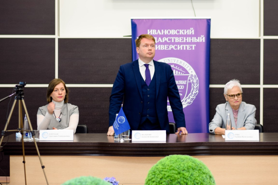 Далее ректор ИвГУ А.А. Малыгин выступил с развернутым предложением о создании Регионального педагогического консорциума, в который бы вошли университет, школы города и некоторые другие организации. Такой консорциум способствовал бы решению целого комплекса задач, от имиджевых до методических, а главное – соединил бы образовательные учреждения в процессах подготовки кадров, создания научно-образовательных центров, проведения конференций, вебинаров, мероприятий, организации проектной деятельности, совместного решения сложных проблем.