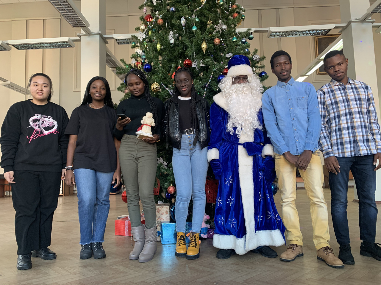 Во время занятия ребята из Афганистана, Конго, Замбии, Палестины, Гвинеи-Бисау, Вьетнама познакомились с традициями празднования Нового года, научились приветствовать Деда Мороза и играть в снежки, поучаствовали в танцевальном конкурсе и конкурсе с мандаринками, сделали снеговика. И, конечно, не обошлось без хоровода вокруг красавицы-елки, новогодних песен, поздравления от Деда Мороза и подарков. Завершили занятие бой курантов, загадывание желаний и поздравления в адрес любимого университета.