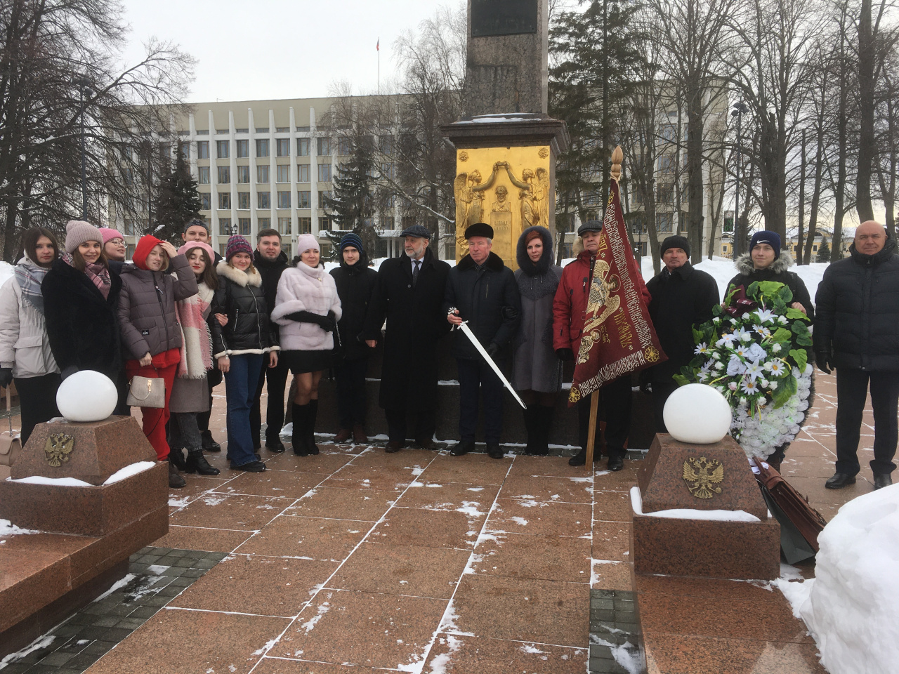 Затем по Ивановскому спуску к Ивановской башне, у подножия которой Минин призывал своих земляков «не пожалети животов своих», делегация повторила путь ополчения, выходившего из города. Для студентов также была проведена историческая экскурсия по Нижегородскому кремлю. Участники делегации возложили цветы и венки к еще одному памятнику спасителям Отечества.