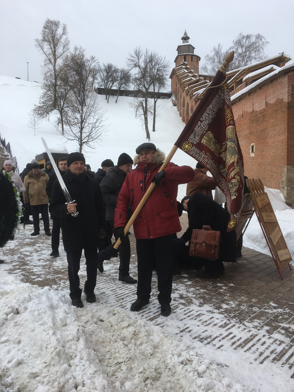 На территории Нижегородского кремля делегация побывала в соборе Архангела Михаила, где покоится прах Кузьмы Минина. После совершения священником заупокойной литии по Минину была проведена презентация проекта «События Смутного времени начала 17 века (1604–1612 гг.) как часть культурно-исторического кода России», заявлена его цель: восстановить путь Второго ополчения, пройдя его в рамках целого цикла мероприятий с освященными символами (знаменем, иконой, мечом) и завершив на Красной площади в Москве, спасенной русскими патриотами от вражеского нашествия. Хоровая капелла им. А.М. Жуковского исполнила духовные песнопения.