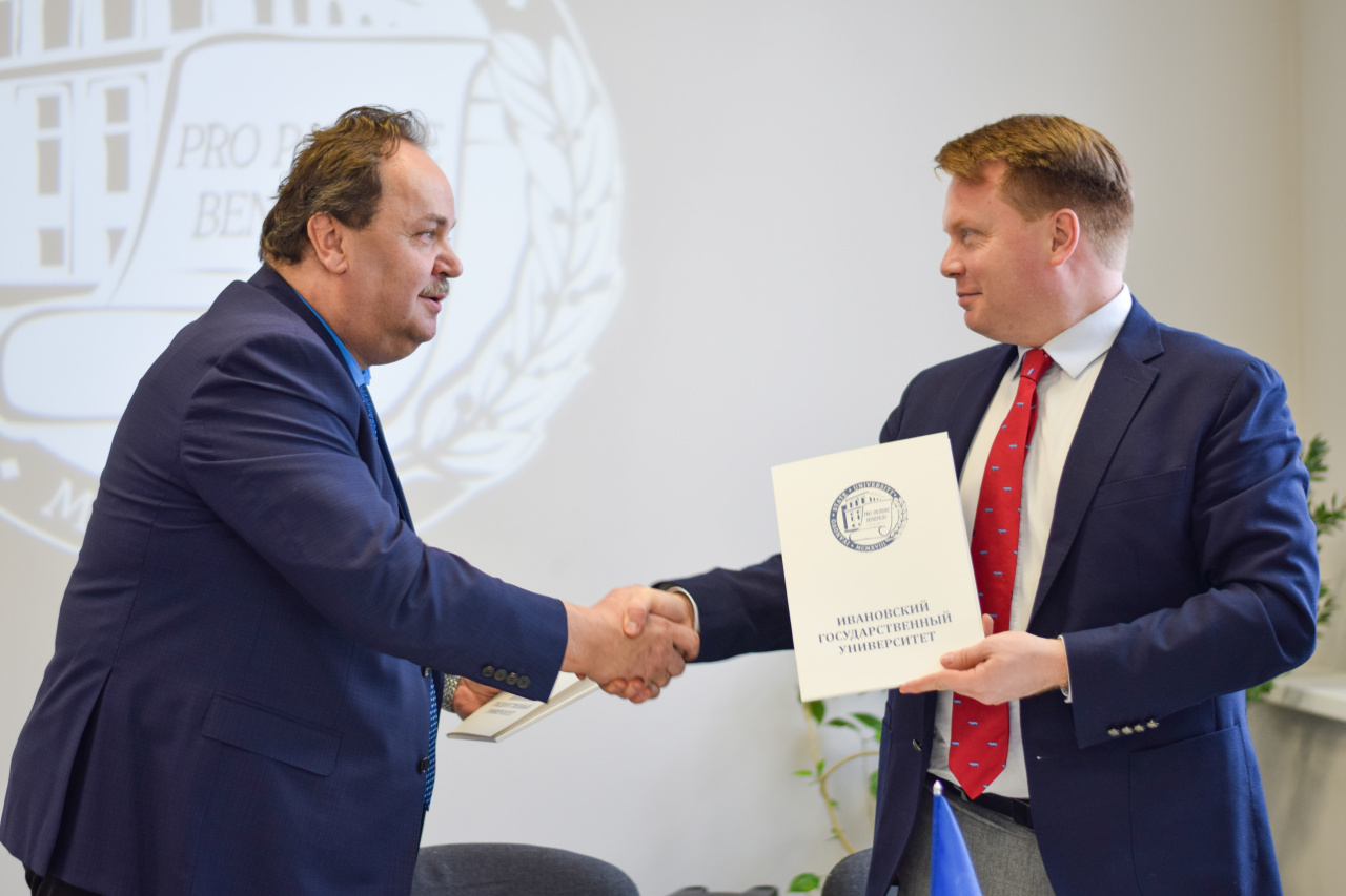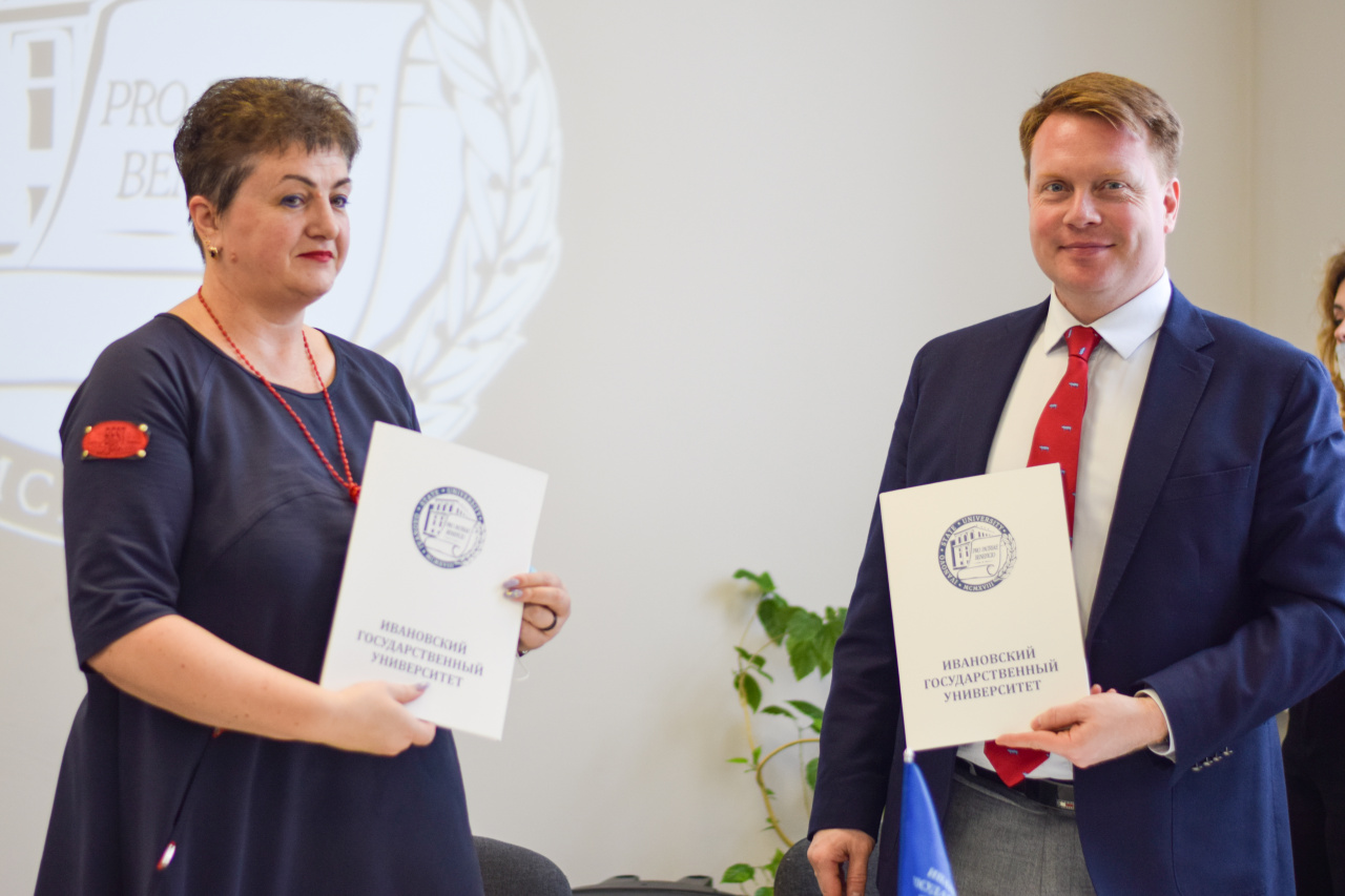 После этого А.А. Малыгин и В.И. Рясин подписали Соглашение о сотрудничестве между ИвГУ и Кинешемским муниципальным районом. А Ольга Николаевна Торгашова, заместитель главы администрации Заволжского муниципального района, прежде чем подписать аналогичное соглашение, отметила, что это не просто мост между районами и университетом, но и шаг в будущее. «Мы очень ждем молодую кровь. Вам возрождать родную землю!» – сказала она.