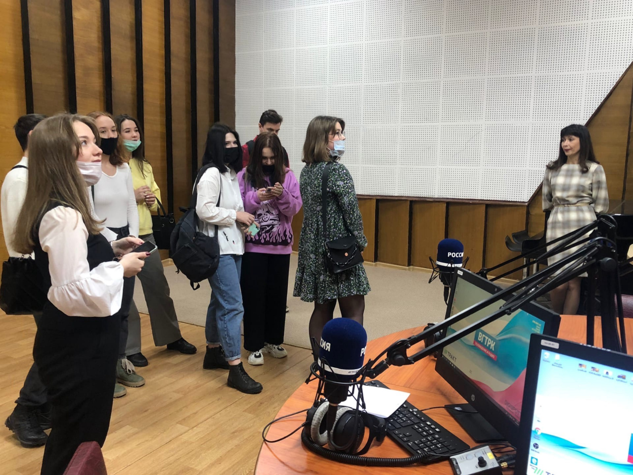 Марина Александровна подробно описала процесс работы в радиостудии и ход монтажа радиопередачи. Студентам выпал шанс почувствовать себя радиоведущими и записать свой голос. Далее их провели в аппаратно-программный блок, откуда выдают записанные передачи и новости. Марина Александровна рассказала о том, как команда работает над созданием сюжетов для выпусков. А в конце экскурсии ребята побывали в студии, где проходит самое интересное – съемки телевизионных выпусков. По словам директора, в 2019 году была проведена полная модернизация аппаратно-студийного комплекса, полная цифровизация регионального телевидения.