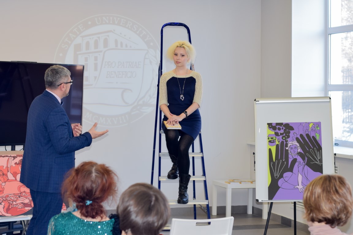 21 марта в «Точке кипения – ИвГУ» состоялась встреча «заинтересованной аудитории» с художником и поэтом Софьей РЭМ – она же кандидат филологических наук, доцент отделения журналистики, рекламы и связей с общественностью С.М. Лукьянова.
