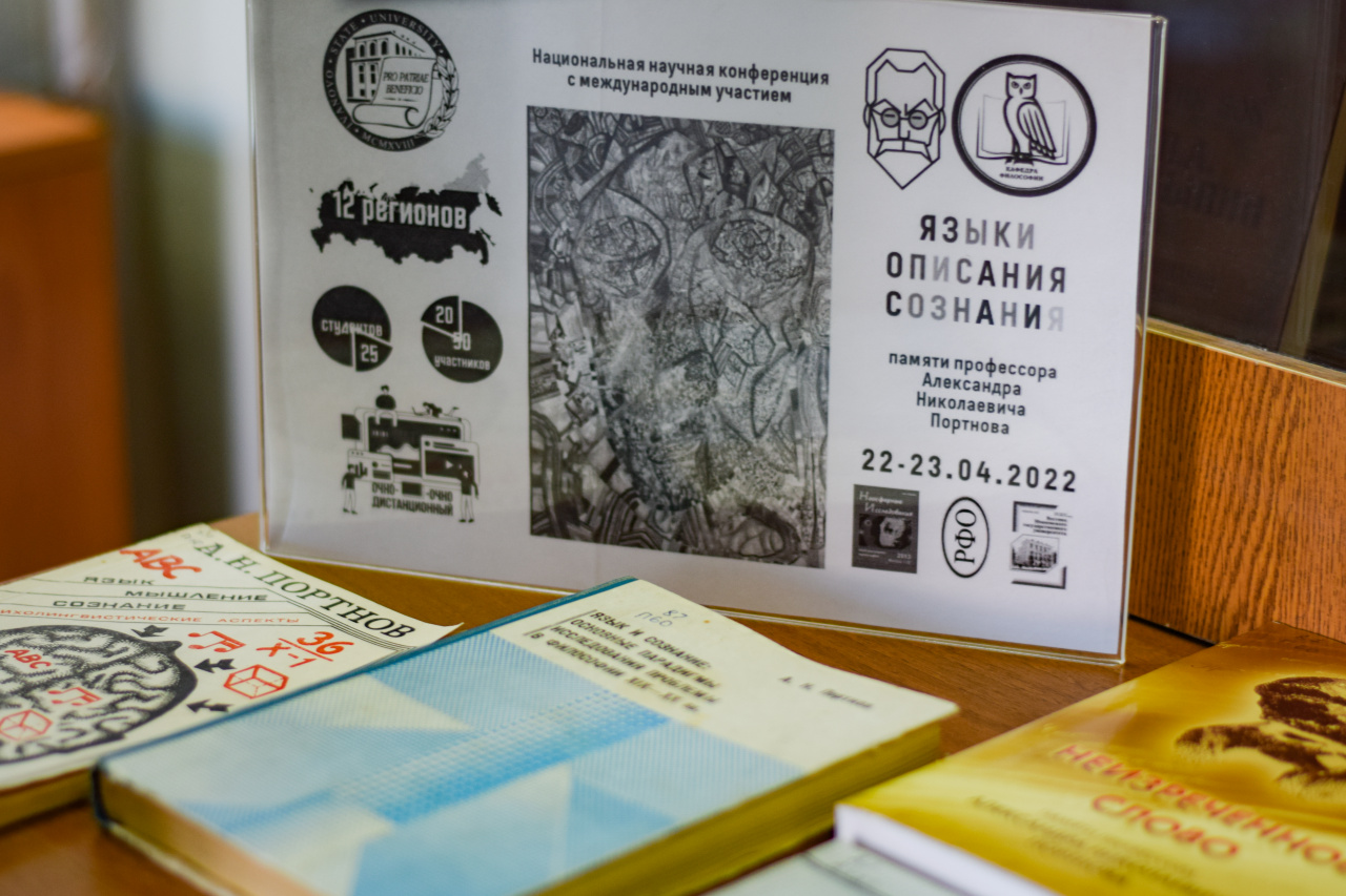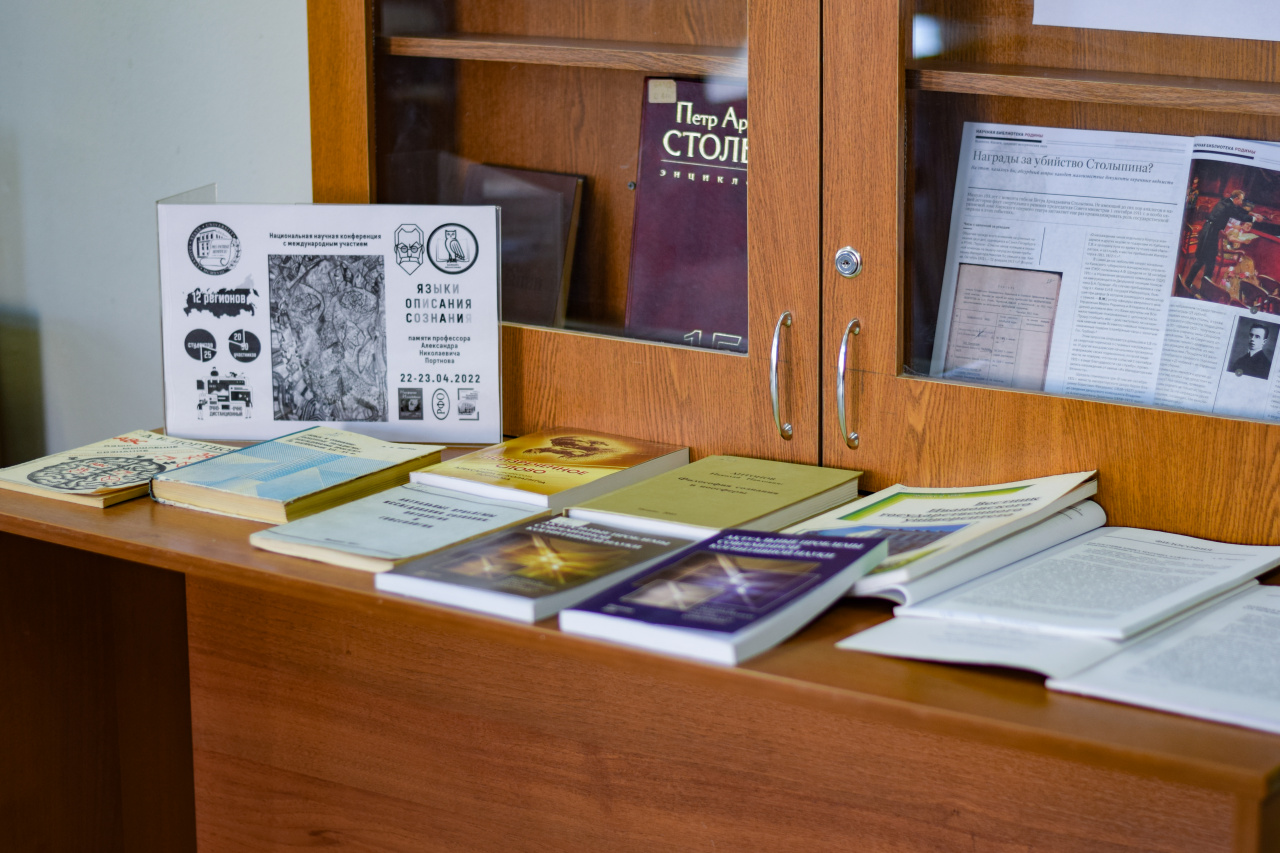 На выставке представлены монографии А.Н. Портнова, статьи в журнале «Вестник ИвГУ», материалы конференции «Актуальные проблемы современной когнитивной науки» (2008–2014), у истоков которой стоял А.Н. Портнов.