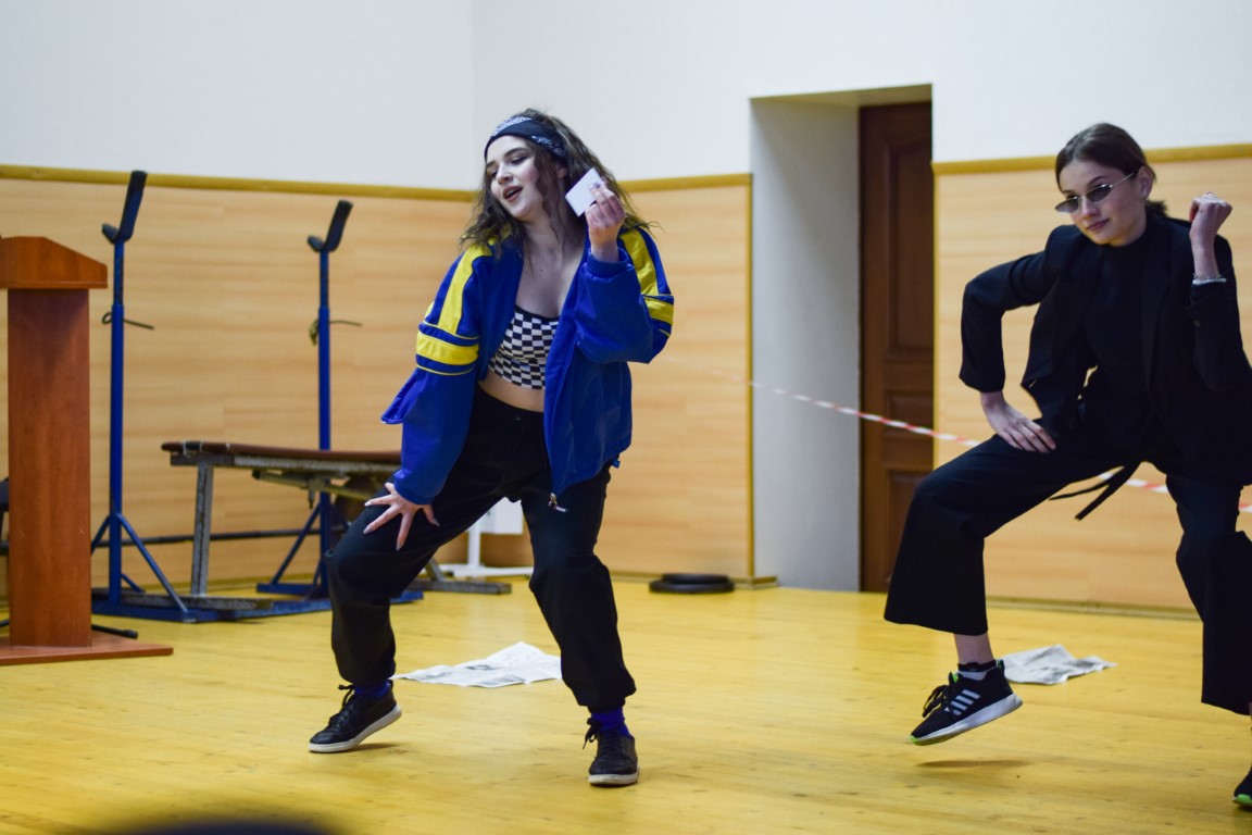 Так, Ева Батурина выразительно прочла стихотворение Марины Цветаевой «Попытка ревности»; Мария Трошина станцевала под нашумевшую в свое время песню Манижи; Ольга Егорова представила свой вариант известного номера Мэрилин Монро; Яна Григорович показала видеосюжет из своей практики работы с детьми, которые под ее чутким руководством мастерили зебру; Юлия Мороз устроила поэтический миниспектакль, прочти стихотворение А. Гоголева «А я говорил: бросай филфак, поехали на Аляску»; Злата Шаршакова усыпила бдительность аудитории психологическим монологом на фоне штанги – а потом стала «тягать штангу», да еще несколько десятков раз (!); Ирина Кутузова зажигательно исполнила при поддержке команды «криминальный танец» «Особо опасна»; Алена Смирнова, конечно, спела – как всегда, эмоционально, эстетично, да еще на нескольких языках!