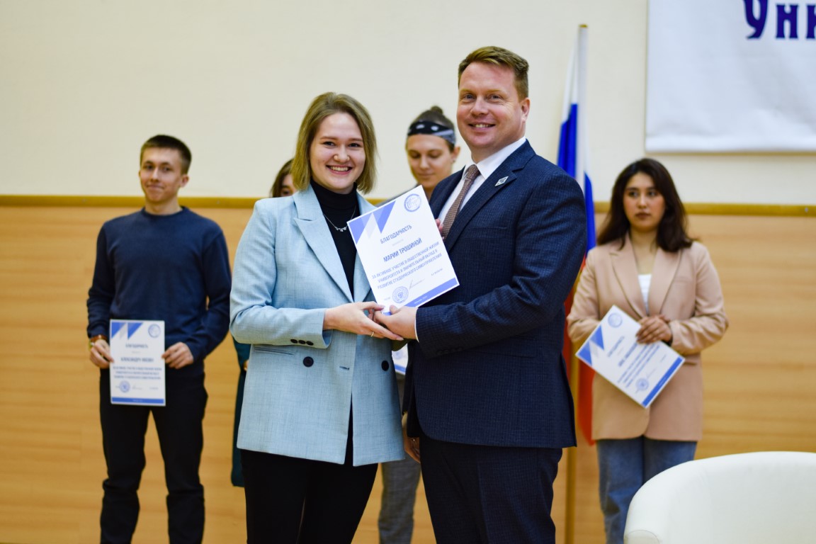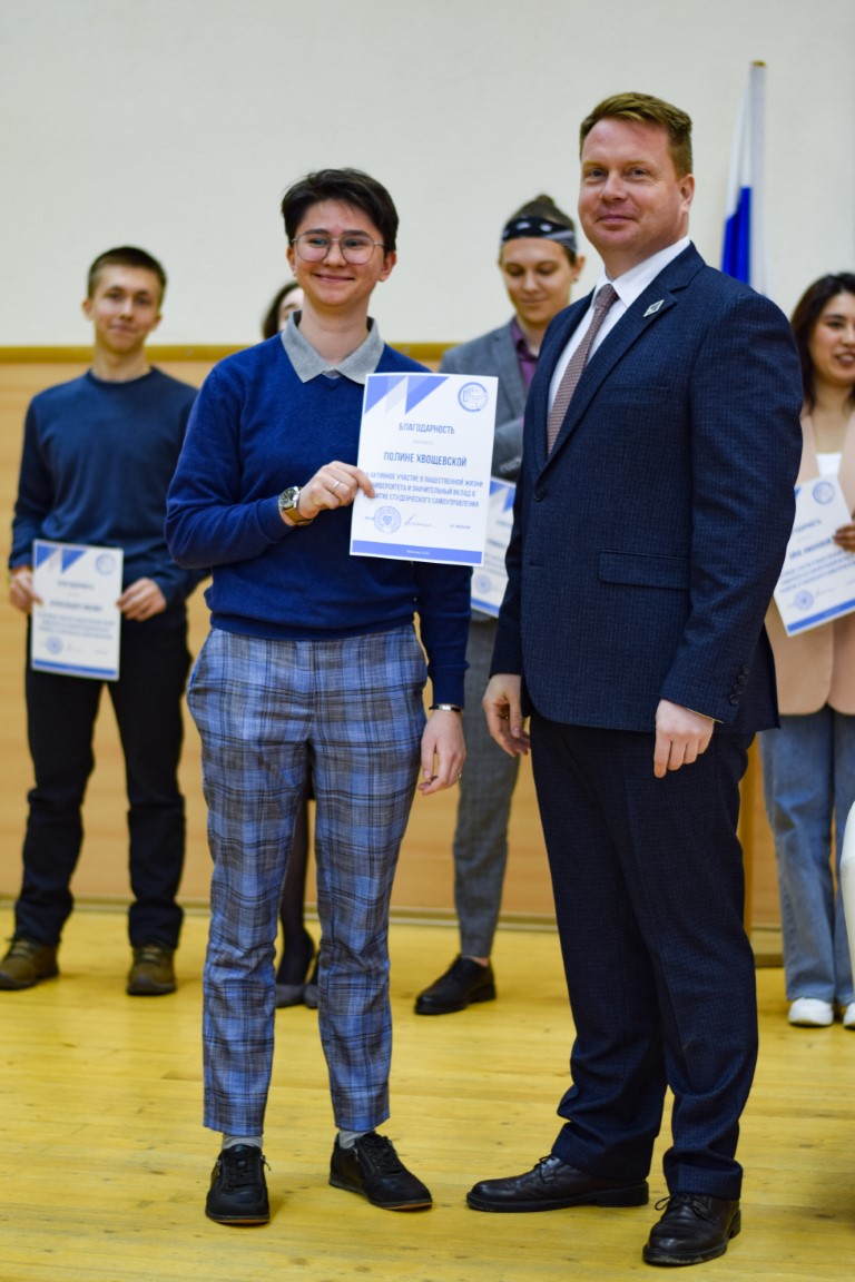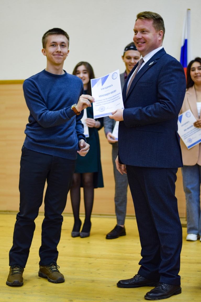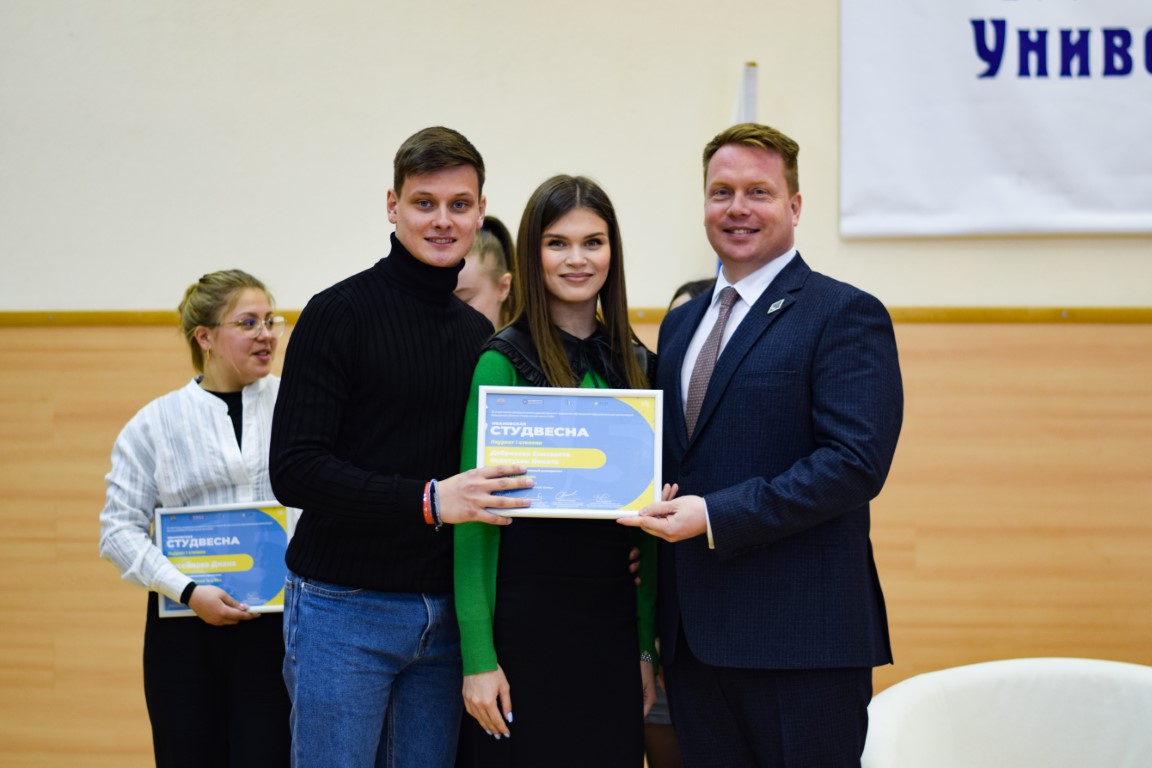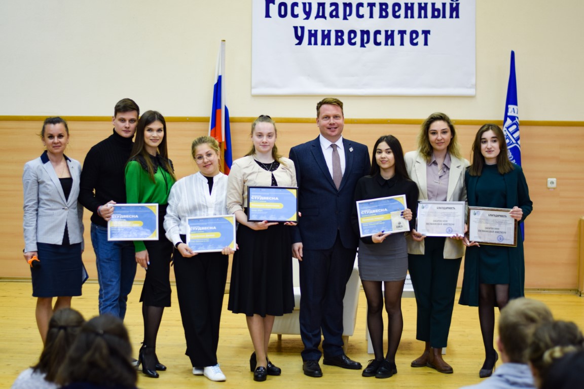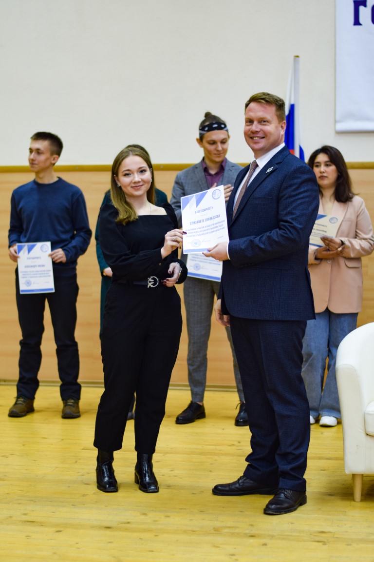 Затем по традиции состоялись награждение студенческого актива и лауреатов областного фестиваля «Студенческая весна» – ну и, конечно, фотосессия на сцене!